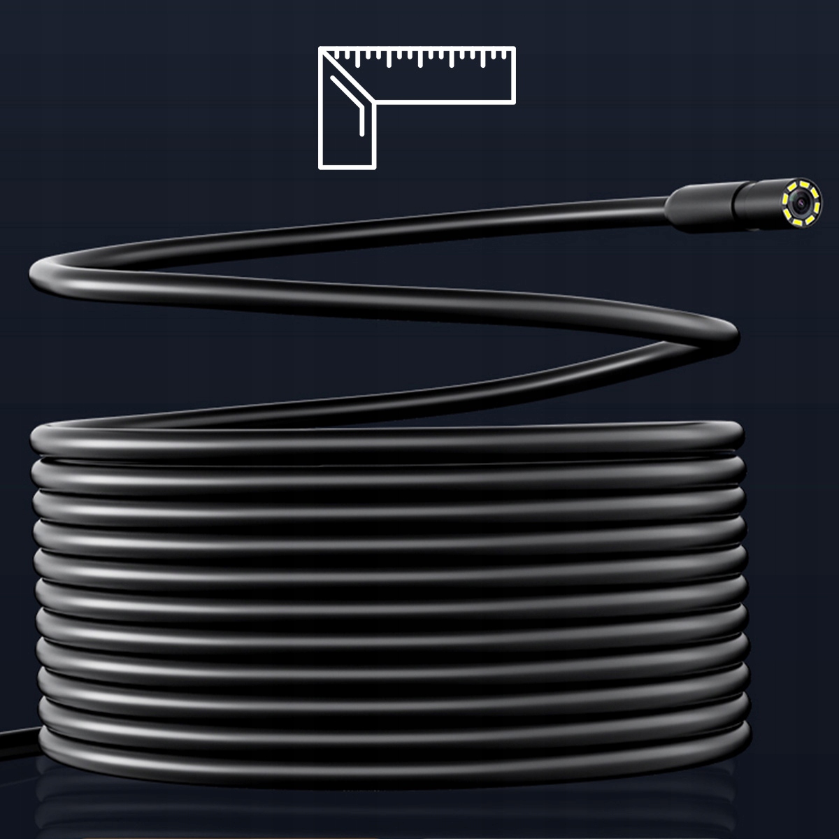 Высококачественный гибкий контрольный кабель 5 метров b> позволяет легко маневрировать в узких и твердых пространствах. Водонепроницаемая головка камеры (IP67) обеспечивает безопасное использование во влажной среде.