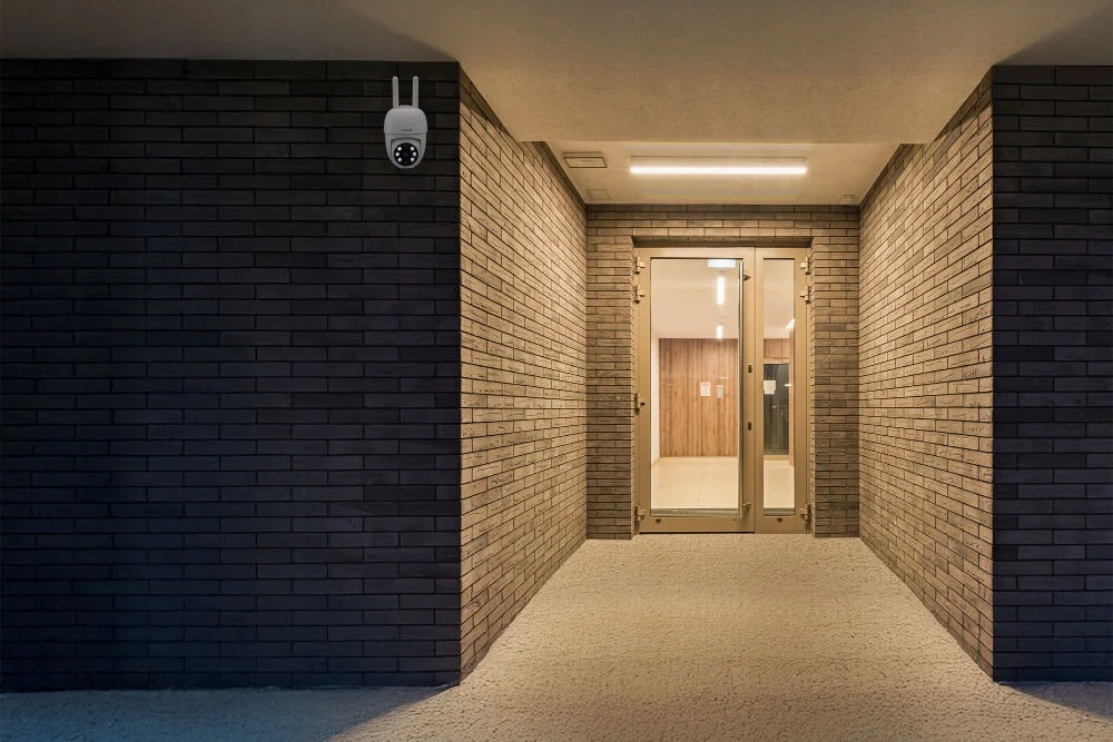голова с двумя двигателями позволяет панорамное вращение камеры в диапазоне 355 ° горизонтально и 90 ° вертикально , что заставляет его записывать большую область вокруг вашего дома, в принципе устранение мертвых зон . Это решение означает, что вам не нужно устанавливать много камер для контроля всего пространства вокруг дома и защиты и контроля над окружением.