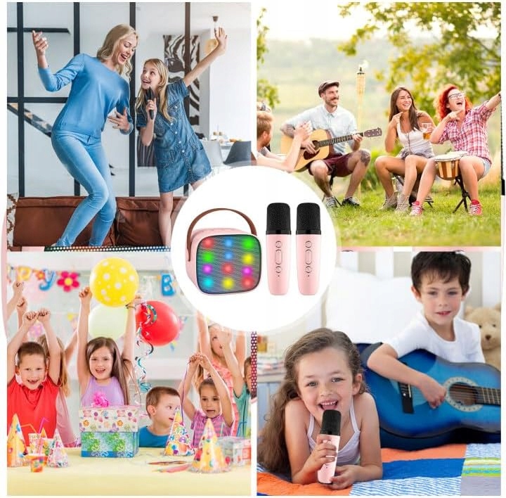 🎤- Караоке-набор Bluetooth оснащен 2 беспроводными микрофонами, которые при автоматическом включении к динамикам с диапазоном до 10 метров и может быть установлено индивидуально для управления голосом громкости/эхо/музыки. Соединение быстро и стабильно. Светодиодные огни пульсируют ритм музыки, и детям понравится огни, которые свободно танцуют на ритм музыки. -10 часов. Поддерживает память TF с песнями MP3, вы можете петь, тренироваться, воспроизводить музыку, слушать песни, что бы вы ни хотели. Продукт цвета: Pink