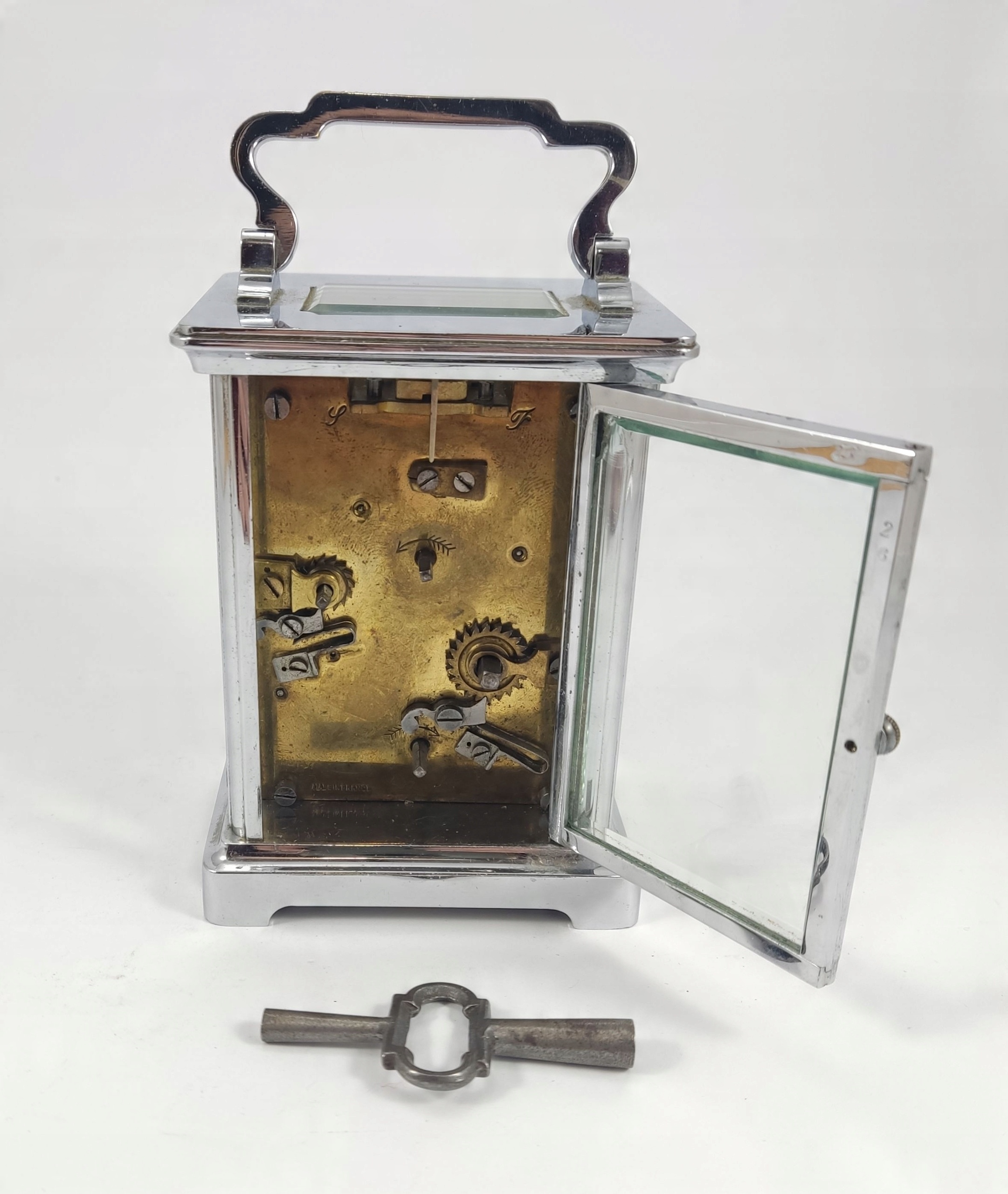 Мы предлагаем проездные часы для продажи, т.е. Карецияк. Оригинальный французский объект 1920 -х годов. Хром корпус со стеклом стеклом. Часы с дополнительной сигнализацией. Заглый быстро слегка поврежден в углу. Механизм частично функционален. Часы обычно ходят по нескольким/дюжине часов и останавливаются. Сильно грязный, так что, скорее всего, требует чистки. Функция тревоги полностью функциональна