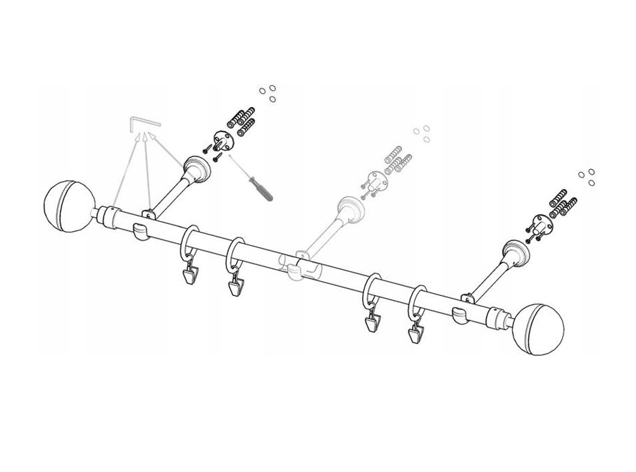 Бесшумные кольца позволяют прикрепить шторы или портьеры к карнизу. Бесшумная вставка внутри колеса позволяет шторам и портьерам очень легко и бесшумно скользить по штанге. Металлическая лягушка позволяет быстро подколоть или заменить ткань.