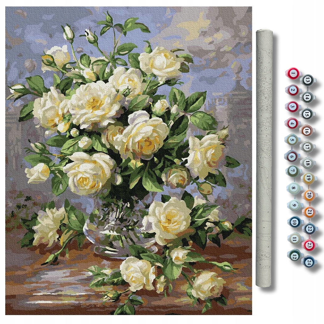 ПРИМЕЧАНИЕ: На этом аукционе представлен набор для рисования по номерам «Букет белых роз», размер 50x40 см БЕЗ РАМКИ