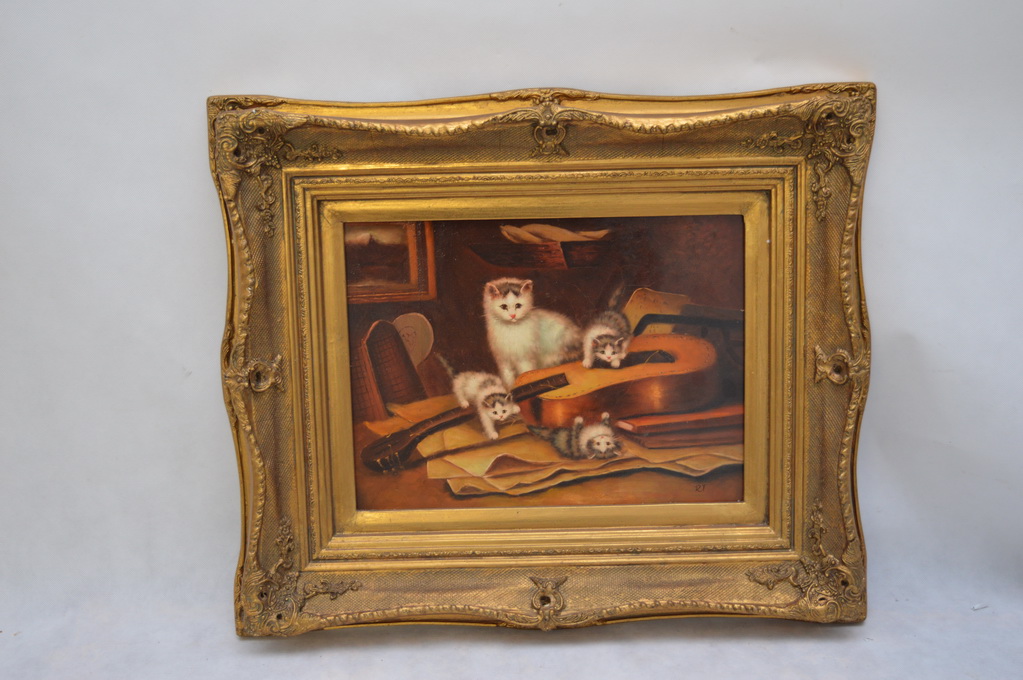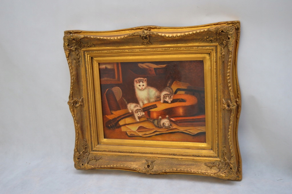 КАРТИНА МАСЛОМ - РАМКА БАРОККО - котята НА ГИТАРЕ - КОШКА