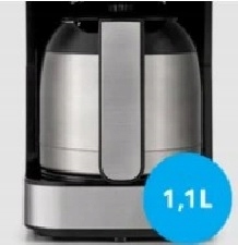 В высококачественном вакуумном кувшине из нержавеющей стали объемом 1,1 литра всегда готов горячий кофе. Благодаря этому вы и ваша семья сможете насладиться вкусным и уютным завтраком.