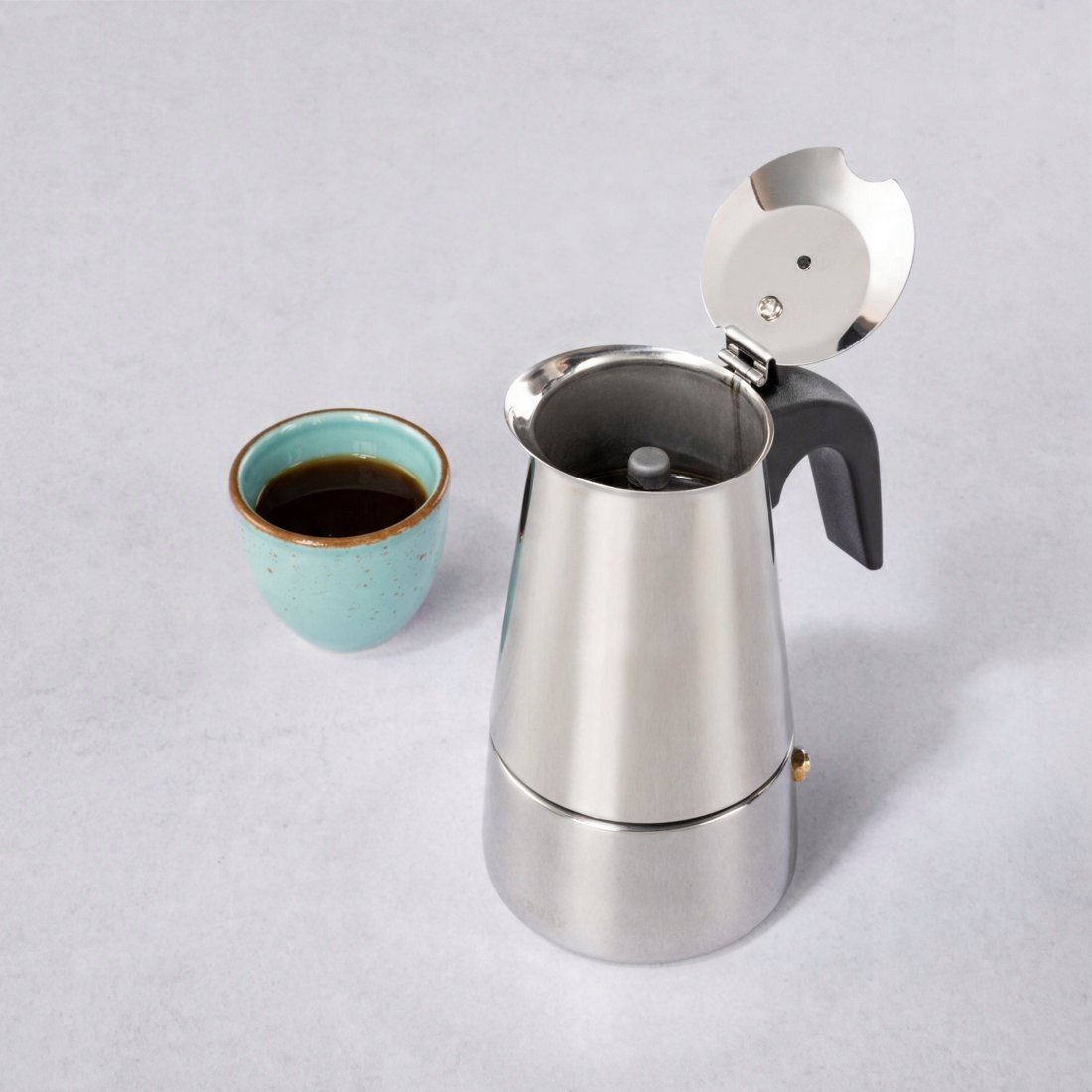 Эта надежная кофеварка не только прочная и долговечная, но также имеет большую емкость, вмещающую до 200 мл > кофе, что позволяет наслаждаться им как в одиночестве, так и в компании.