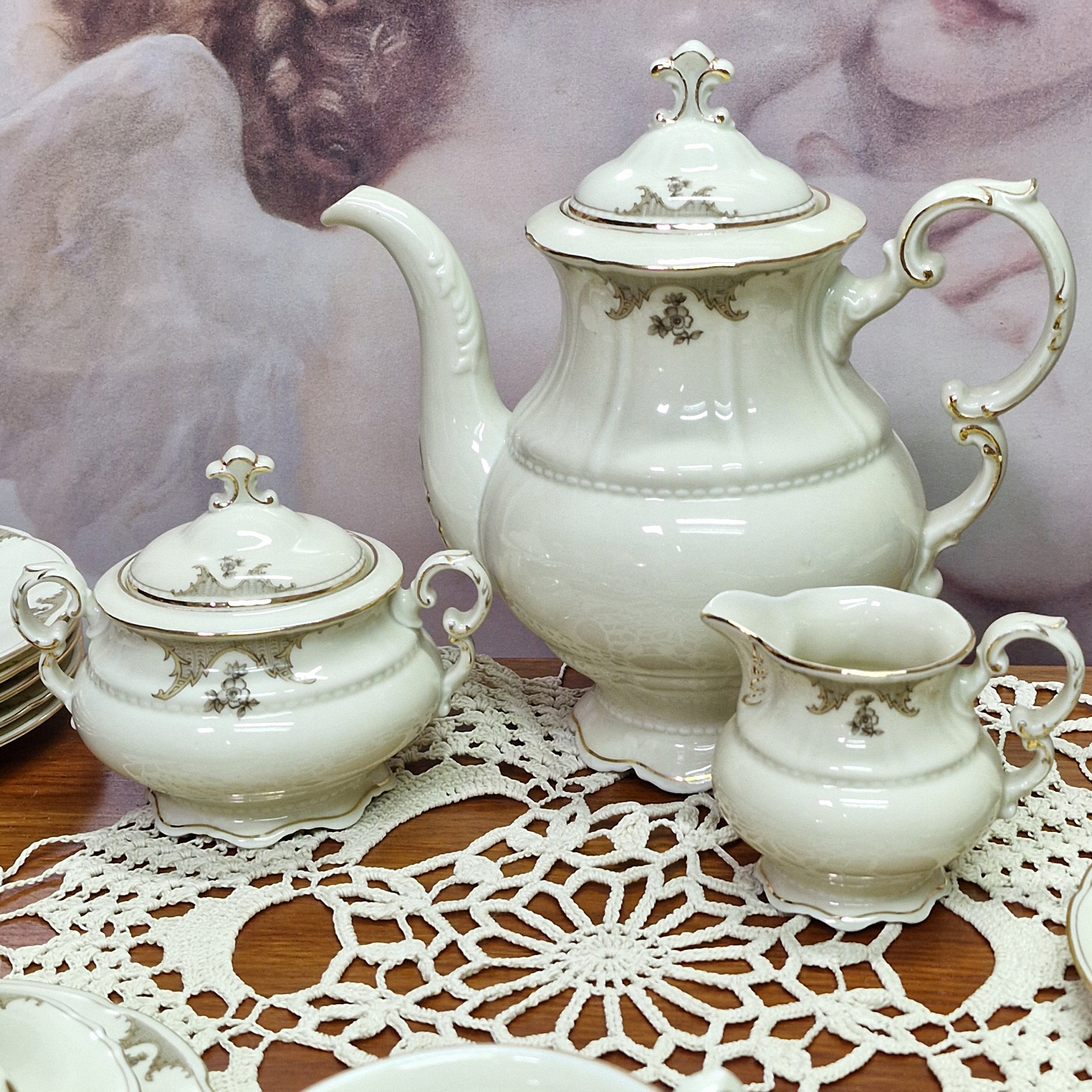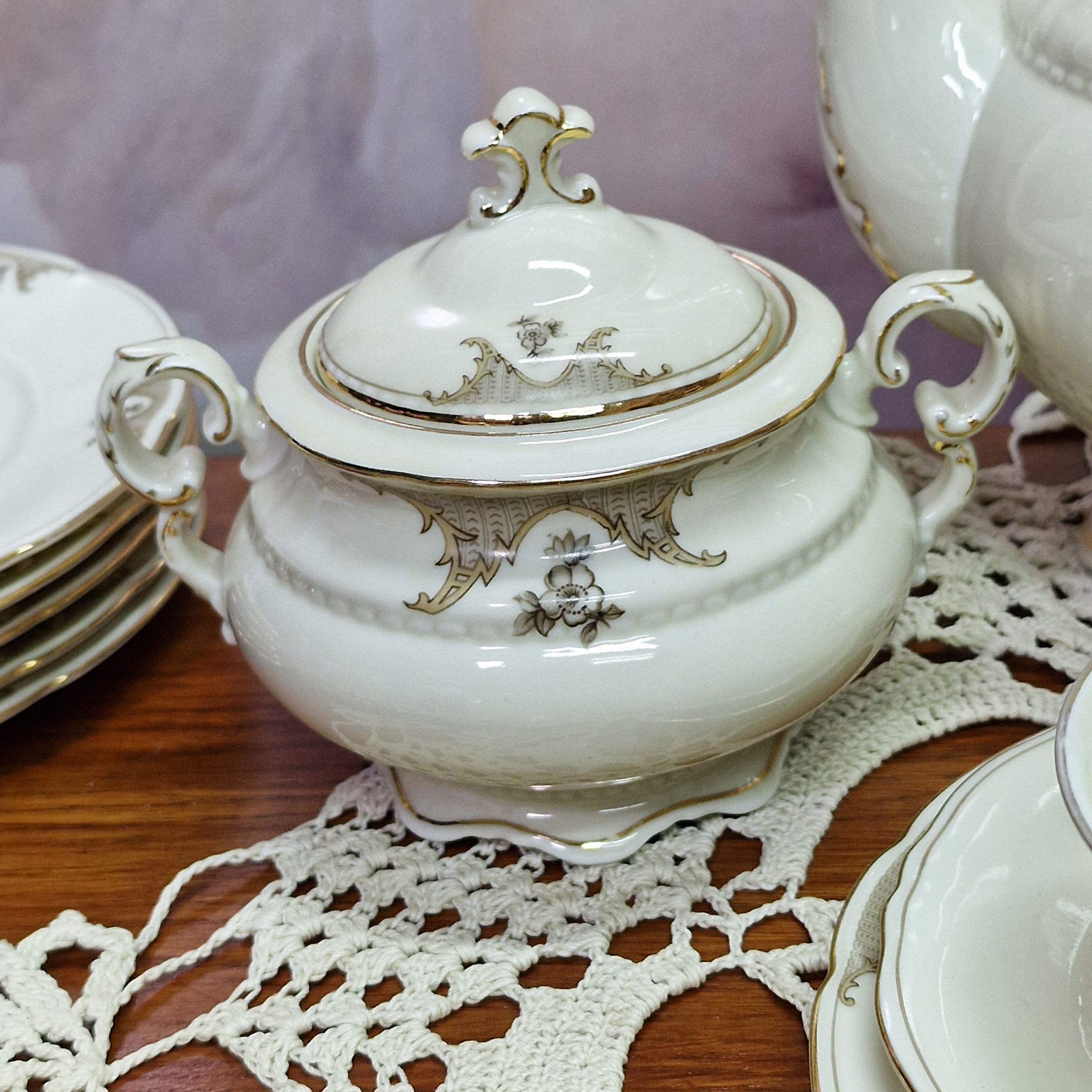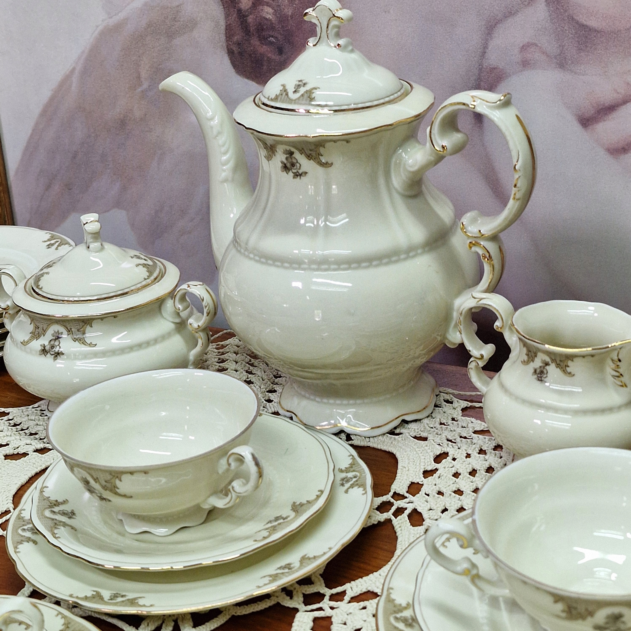 Сервировка из кремового фарфора с позолотой