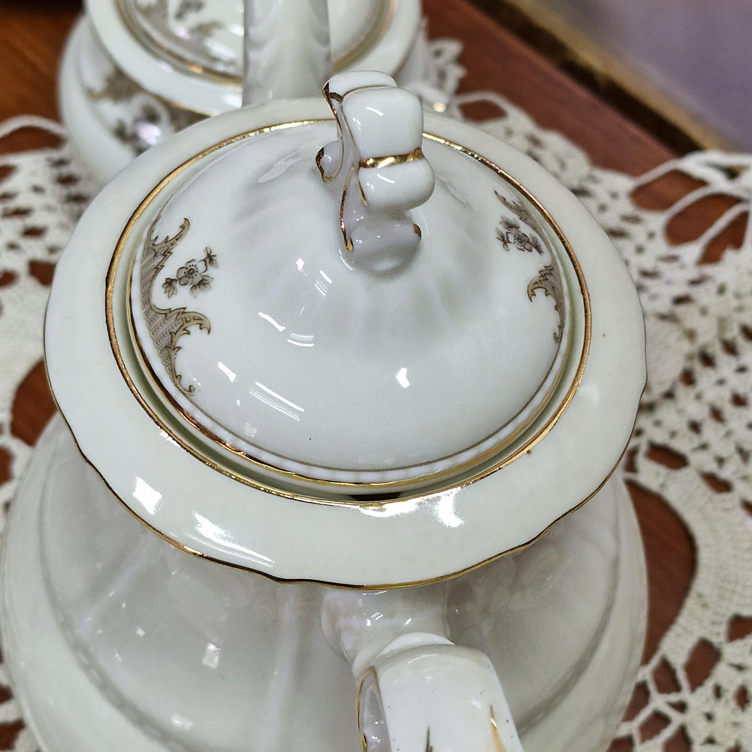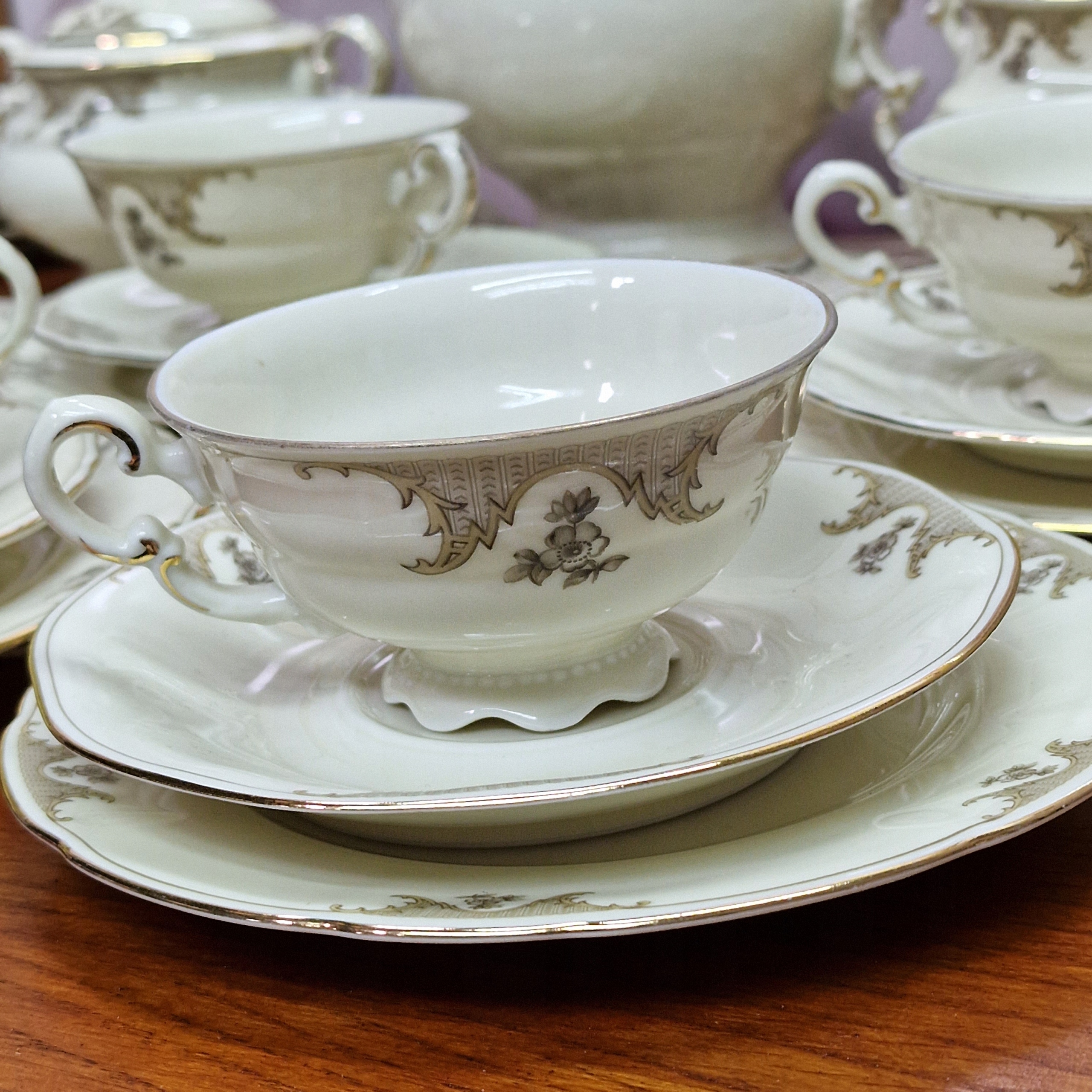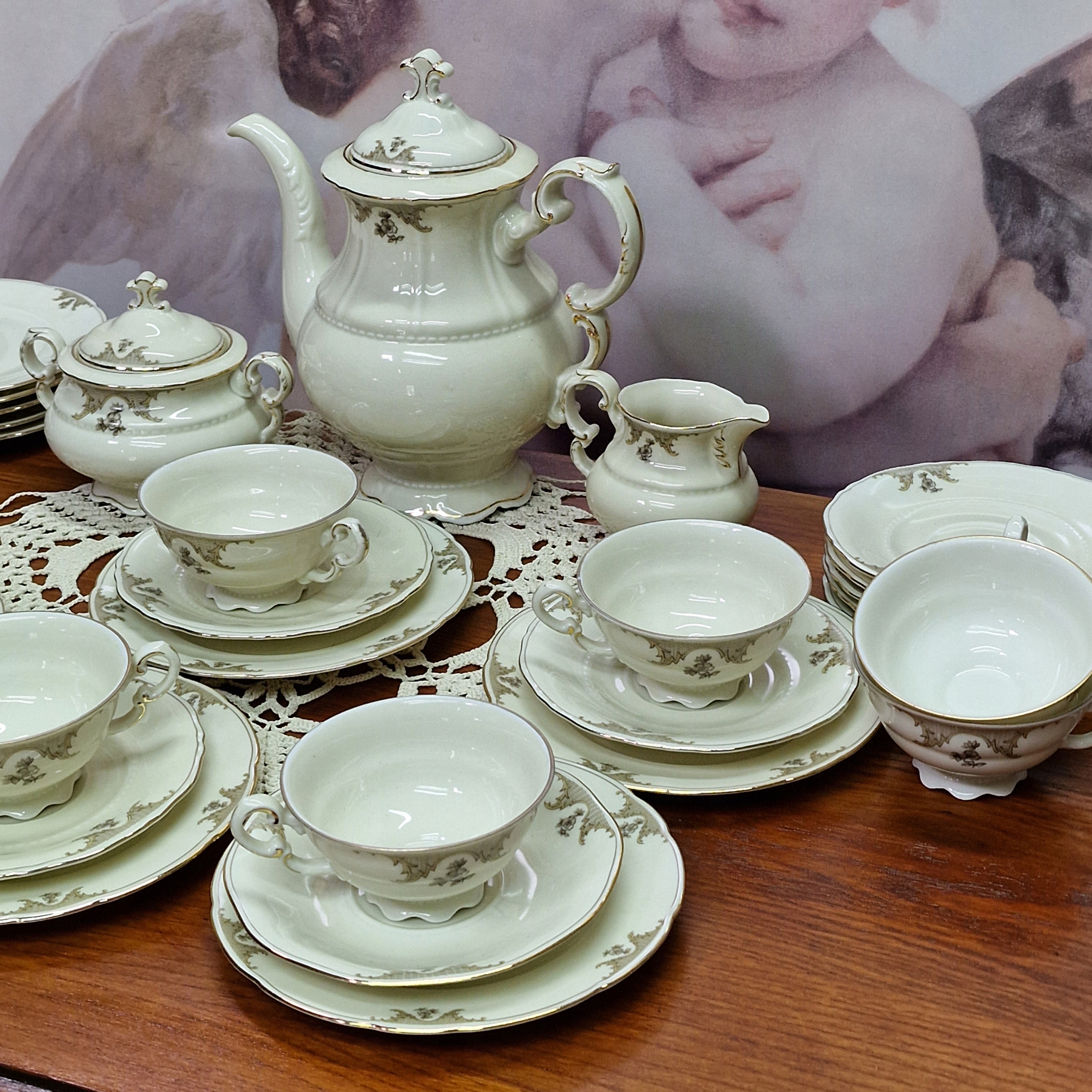Сервировка из кремового фарфора с позолотой