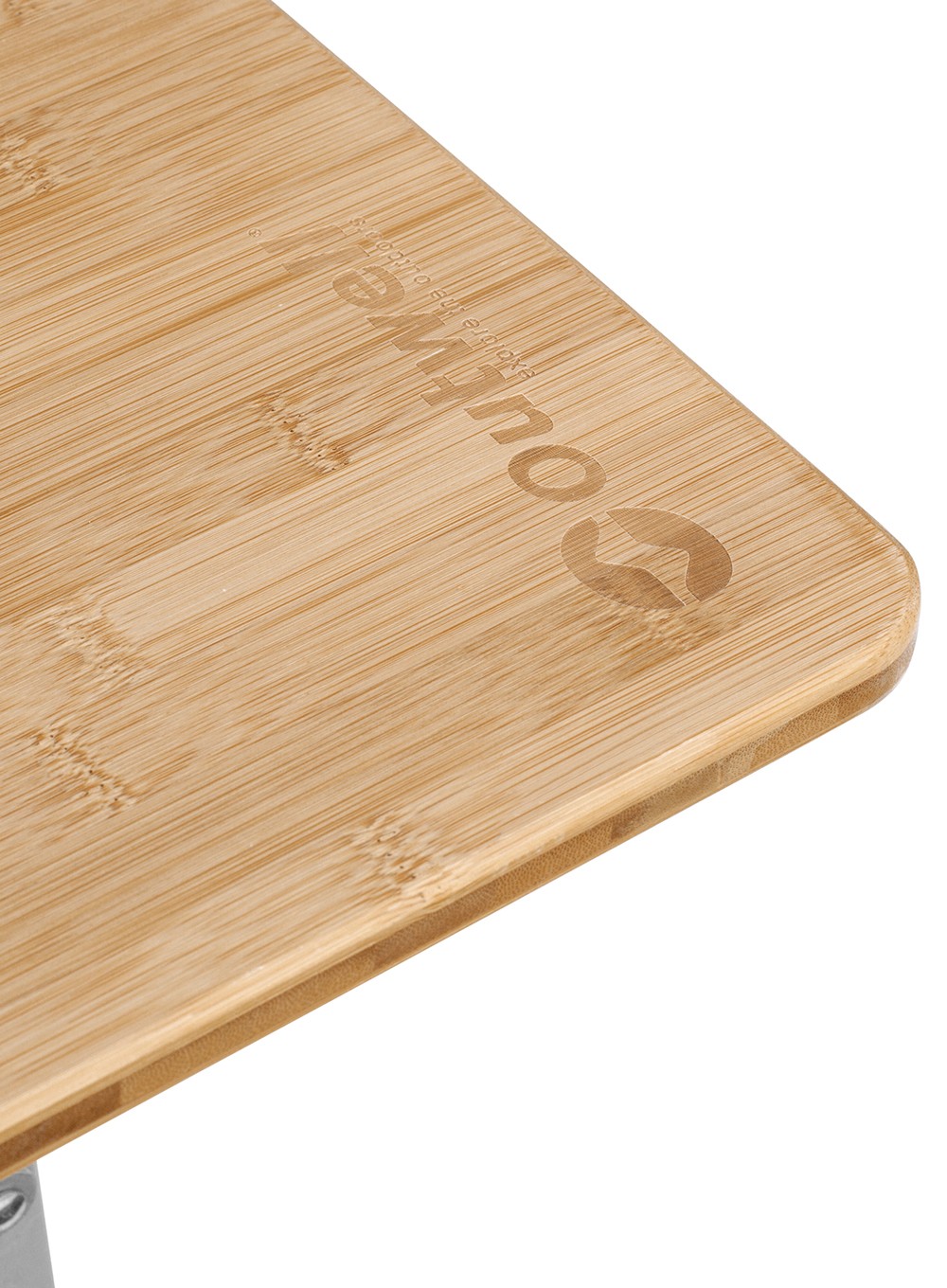 - Средний стол с алюминиевой рамой и бамбуковой столешницей