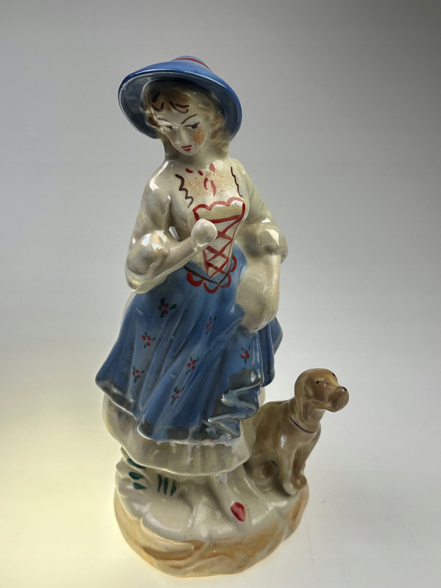 NoWogrodziec Ceramic Pigturine Girl в шляпе с высотой собаки 23 см