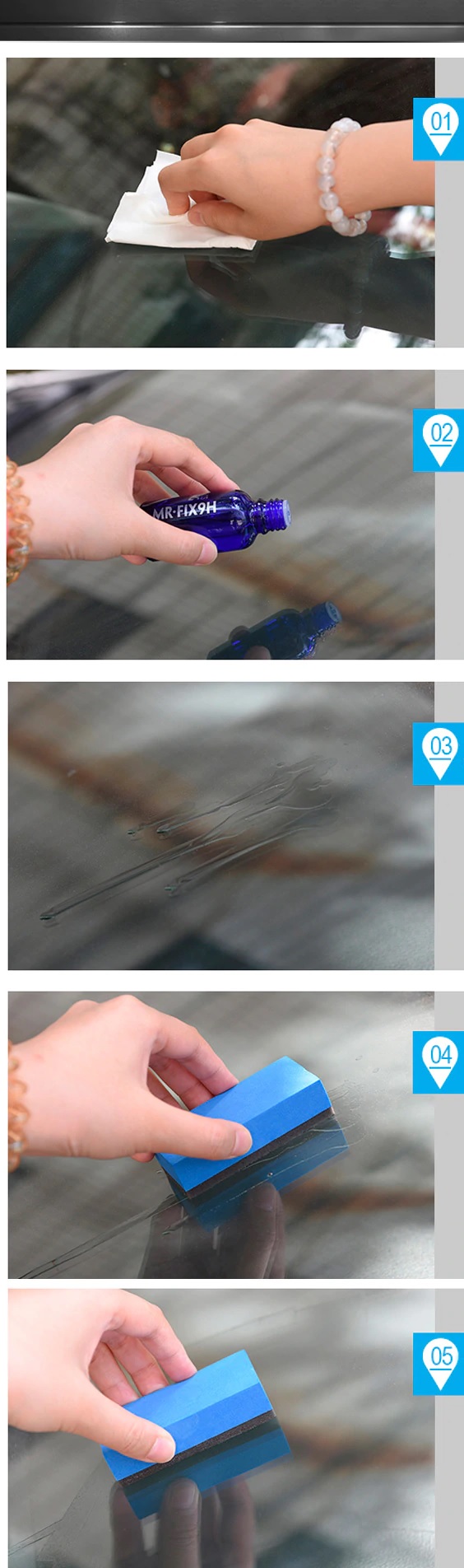 Можно использовать на фарах и окнах автомобилей. Покрытие способствует быстрому стеканию воды с автомобиля, предотвращая высыхание капель воды на автомобиле.