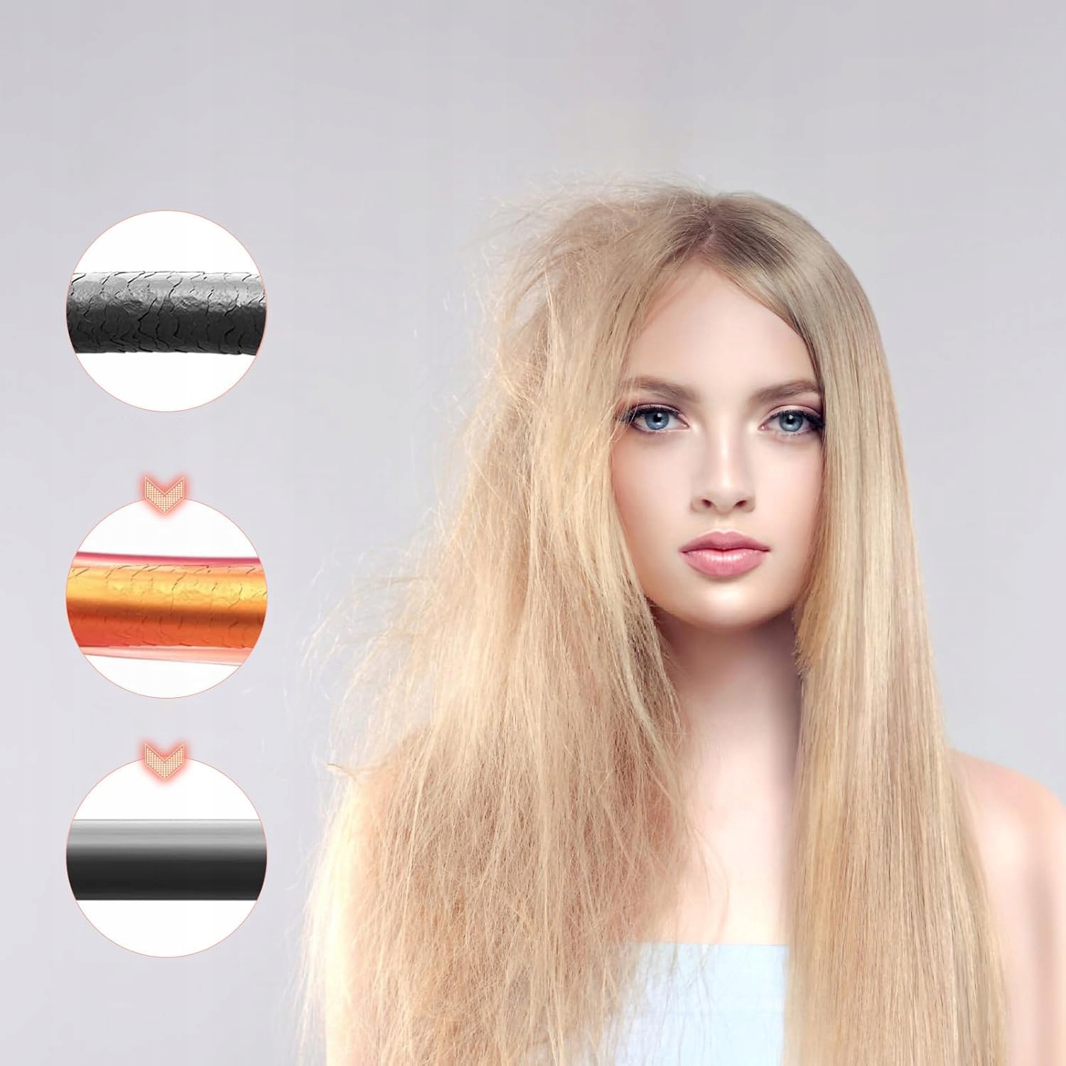 ♨ Керамическая пластина с покрытием: Черная керамическая нагревательная пластина от турмалина производит негативные ионы, чтобы сгладить открытые волосы, сохранить натуральные масла и влагу в волосах, уменьшить вьющиеся и избежать повреждения волос во время стиля.