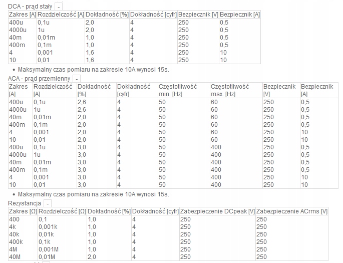 Погрешность: +- (% от указанного значения + количество младших цифр), если не указано иное, для температуры 23 градусов C +- 5 градусов и относительной влажности до 75%