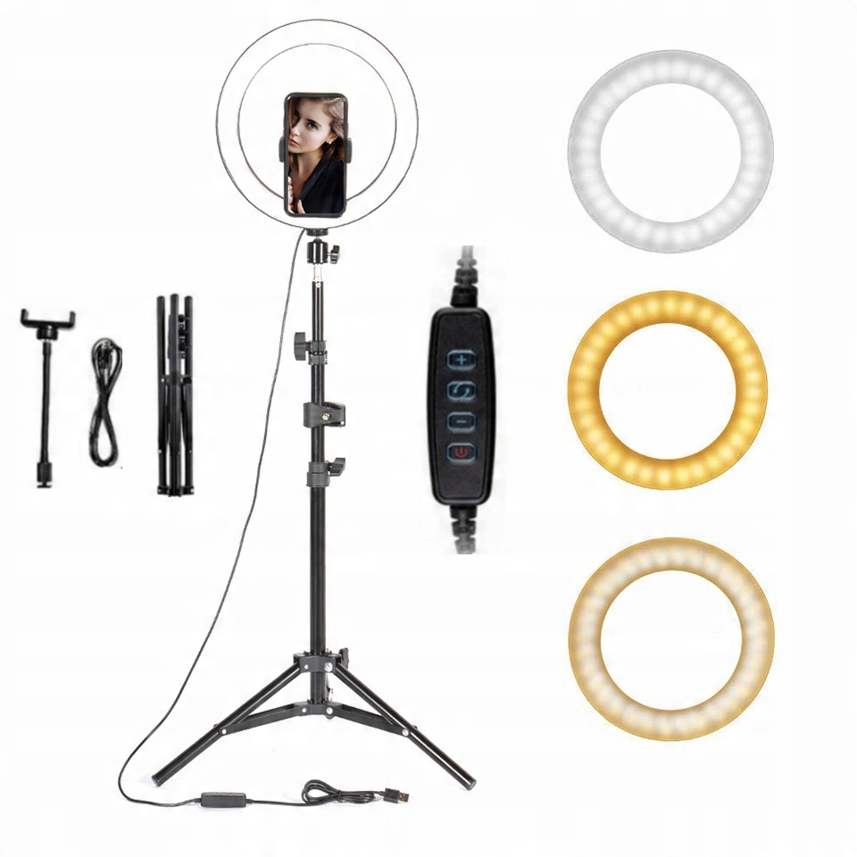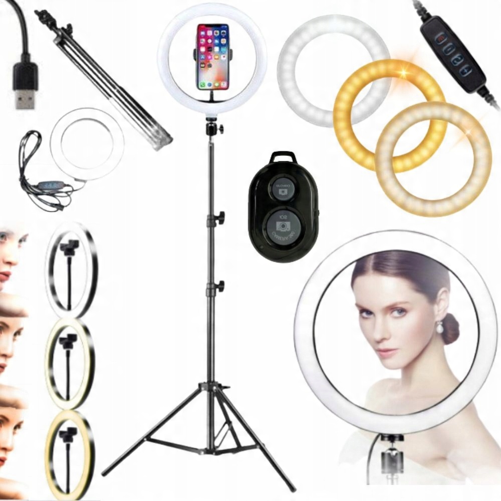 ➡️Лампа Можно управлять с помощью пульта на кабеле. Три режима освещения: холодный, теплый и нейтральный. Простая установка на устойчивый штатив обеспечивает исключительно комфортную работу со светильником. Входящий в комплект держатель телефона обеспечит прочное и безопасное крепление камеры. Форма круга означает, что фотографируемый объект освещается равномерно со всех сторон и нет необходимости предусматривать другие источники света.
