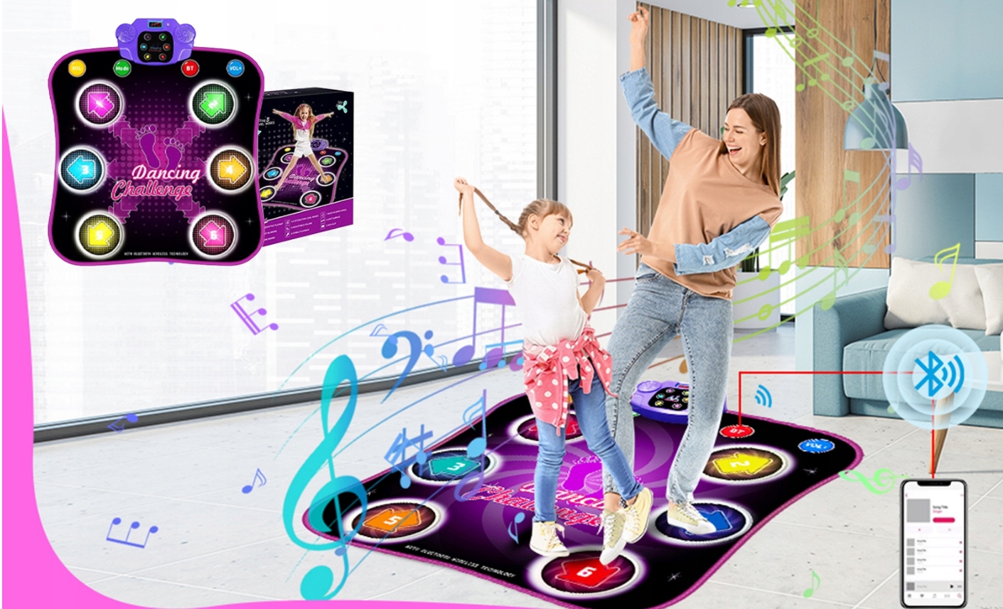 - Наш танцевальный коврик подключается к смартфону по Bluetooth, спасибо, кому ваш ребенок Больше не нужно беспокоиться о танцевальных песнях
