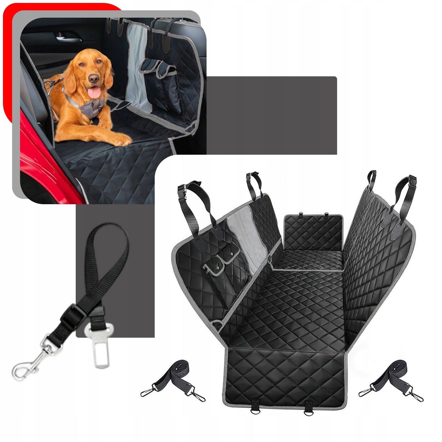 - предлагаемый набор имеет дополнительный ремень безопасности для собаки/кошки . Пояс прикрепляется к стандартному разъему в автомобиле.