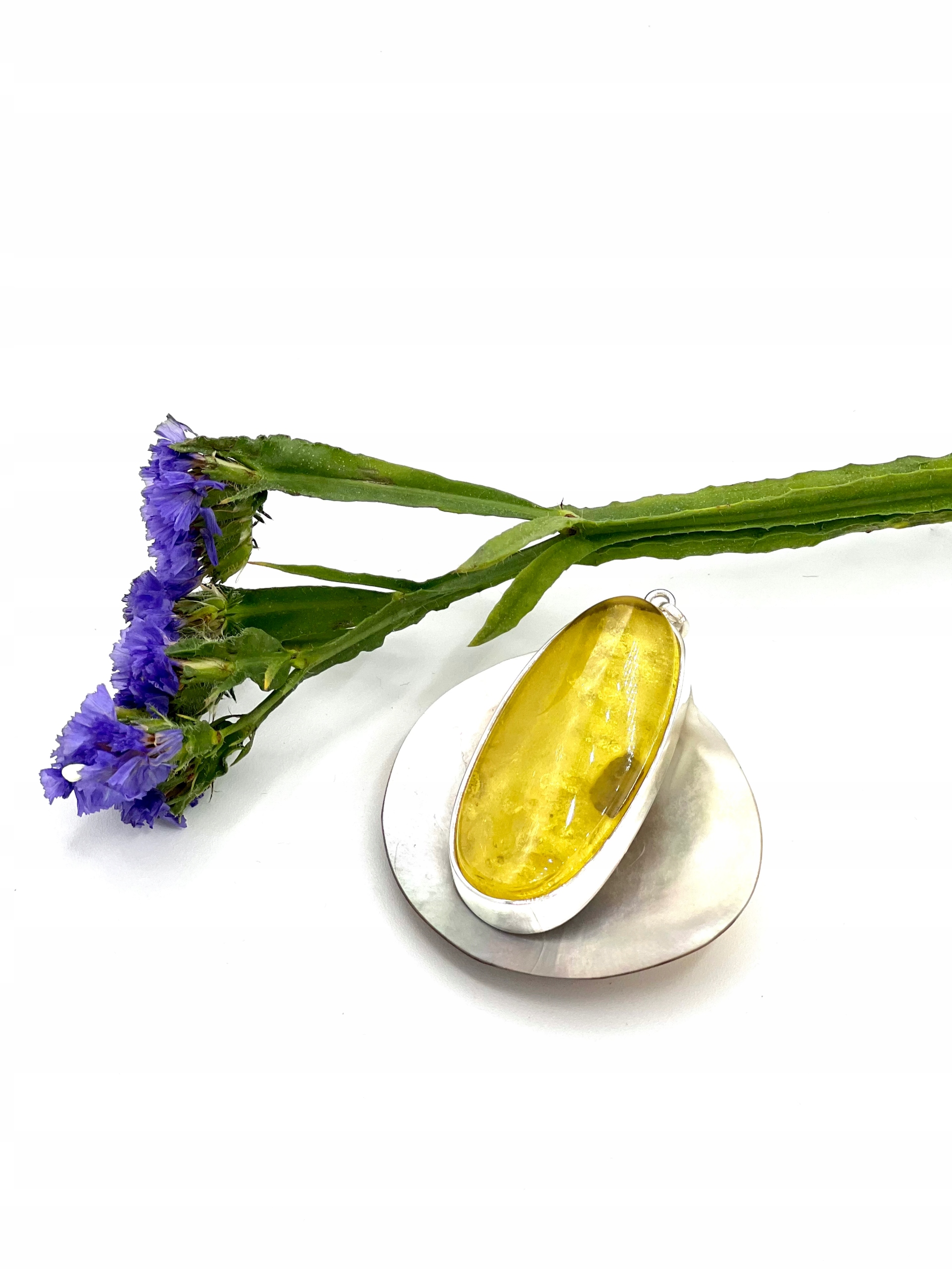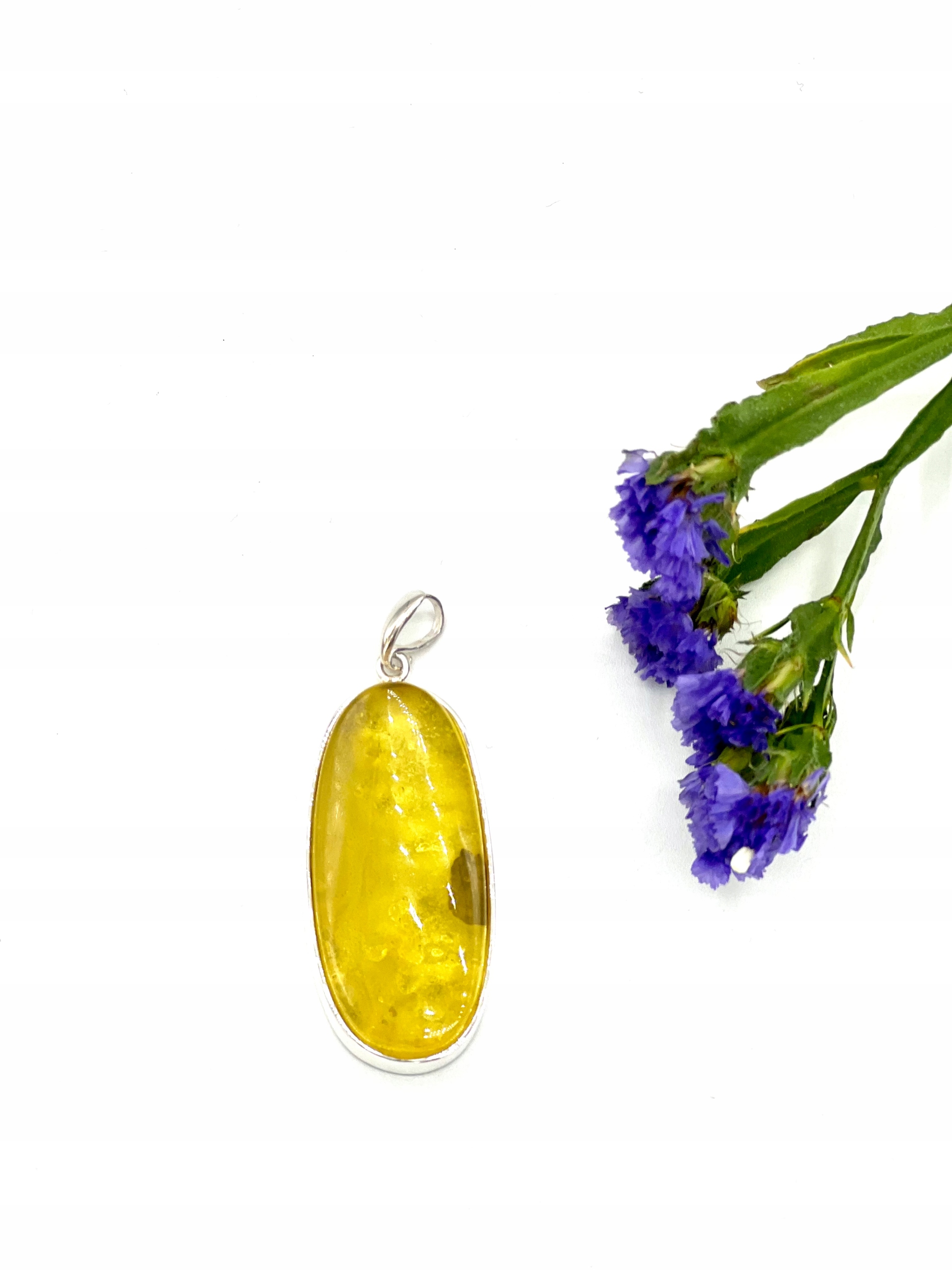 уникальный кусок балтийского янтаря красивого медово-лимонного цвета в серебряной оправе.