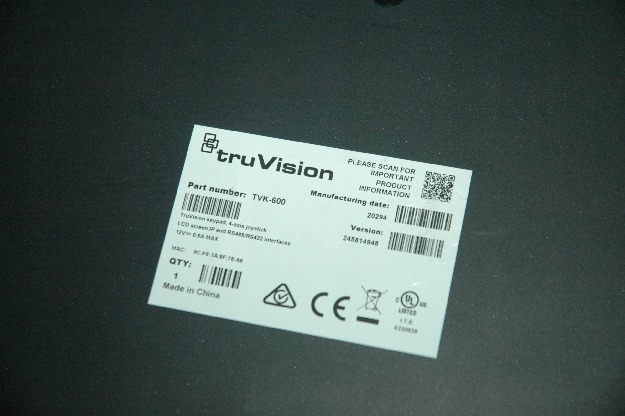 Клавиатура TVK-600 разработана для совместимости с PTZ-камерами, кодерами, декодерами и сетевыми видеорегистраторами, а также видеорегистраторами серии TruVision. TVK-600 позволяет легко контролировать выходы монитора рекордера и декодера, обеспечивая точное PTZ-управление пользовательскими интерфейсами рекордеров с помощью одной клавиатуры. Связь через IP или RS485. 4-осевой джойстик. Цифровые и функциональные кнопки. Включает управление PTZ (аналоговое и IP).
