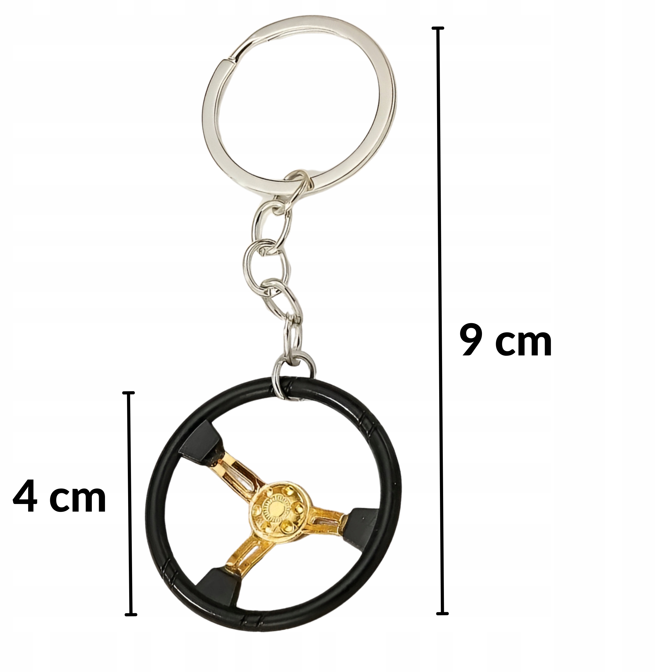 Кольцо с ключом, ключ в виде рулевого колеса - черное и золотое.