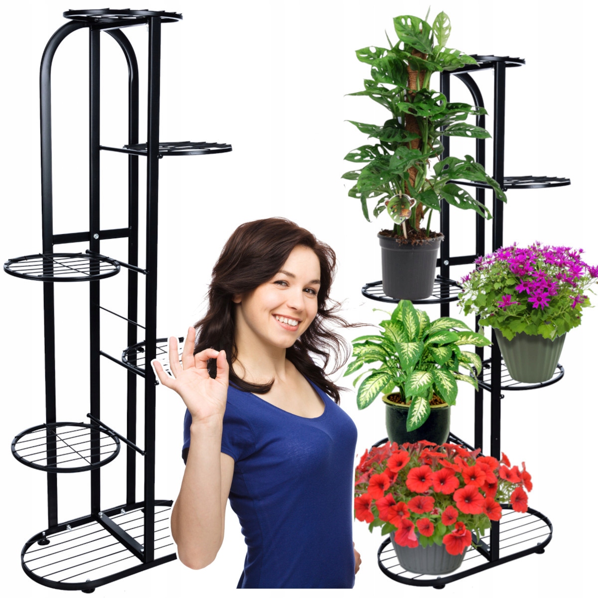 КЛУМБА МЕТАЛЕВА ПІДСТАВКА 7 ГОРЩИКІВ РОСЛИНИ КВІТИ ЛОФТ ЧОРНИЙ ВИС. 107