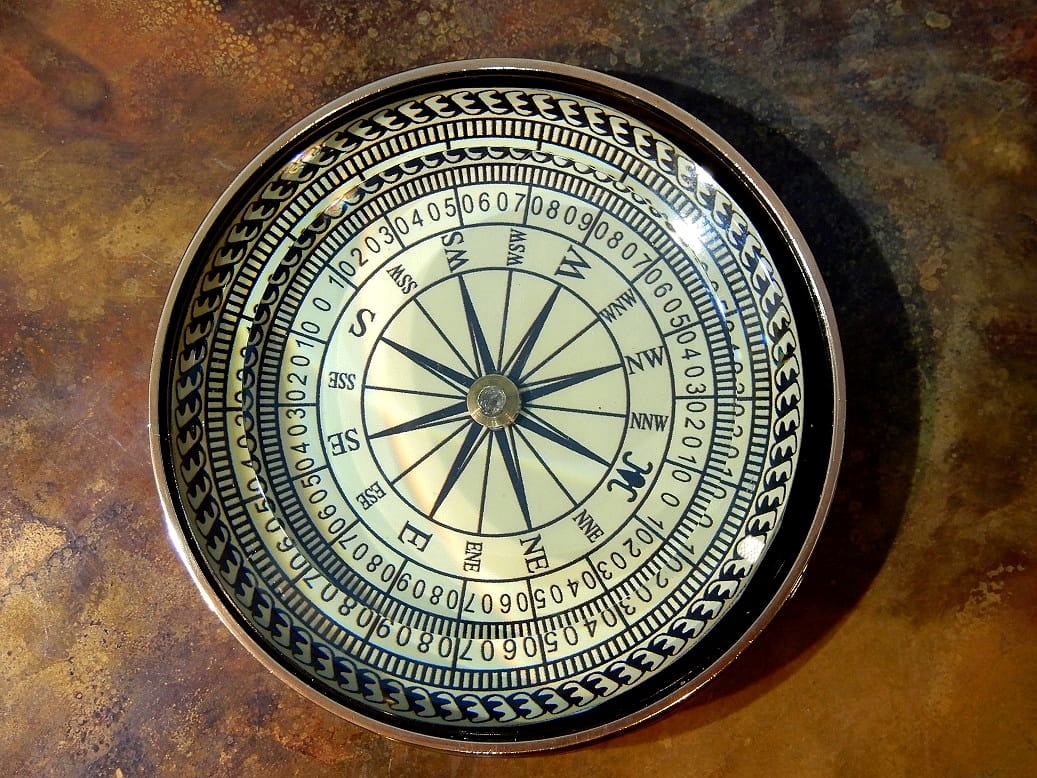 красивый компас линз, что создает иллюзорное впечатление, что под стеклом есть жидкость. Для наших глаз середина компаса "плавает".