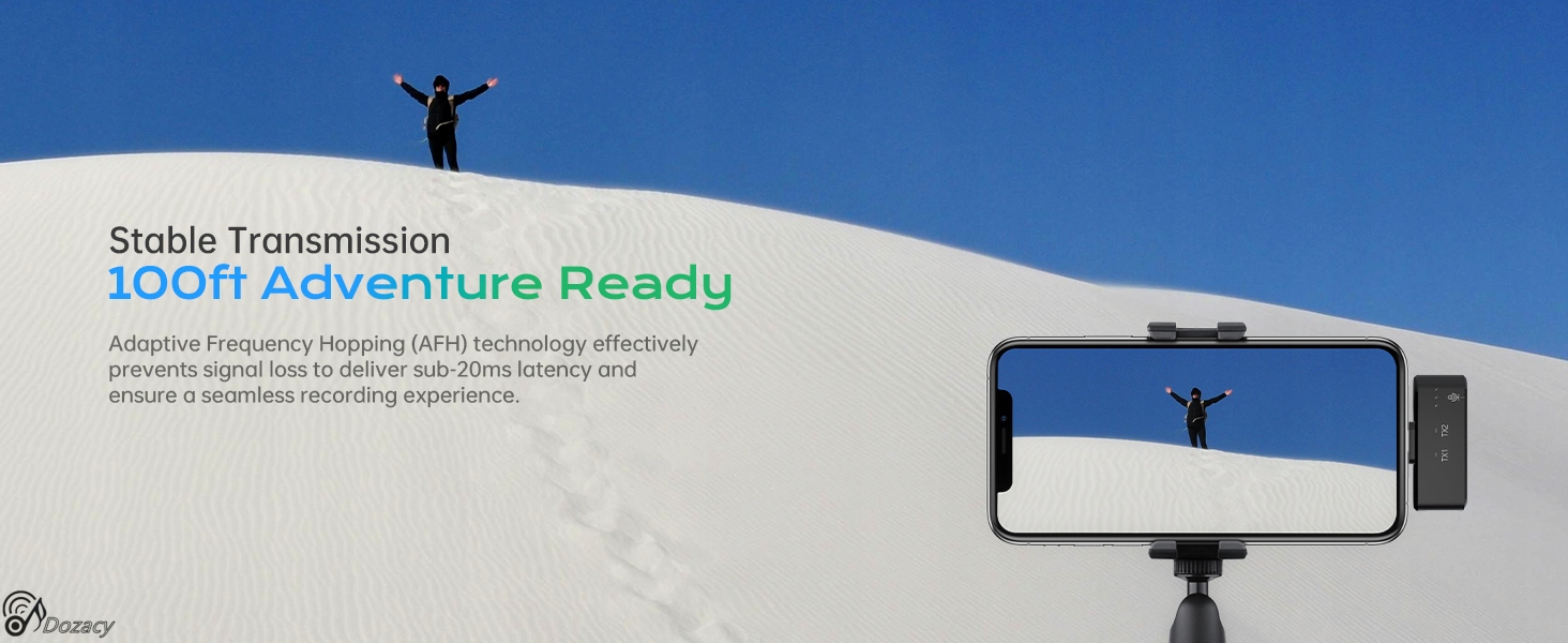 Усовершенствованная технология 2.4G обеспечивает стабильное соединение, позволяя осуществлять запись по всему миру. Снимки под углом с беспроводной передачей на расстояние 100 футов и сверхнизкой задержкой, что позволяет избежать проблем с синхронизацией губ при постобработке.
