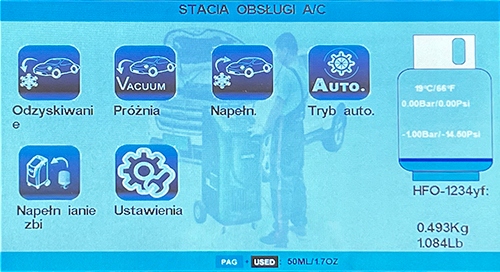 AC-Pro кондиционер Фактор R134A R1234YF меню PL Automat