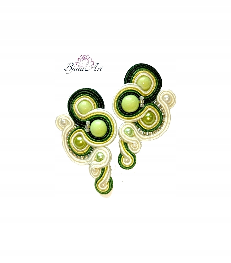 Kolczyki Haft Sutasz Zielone Kolorowe Sztyft Soutache