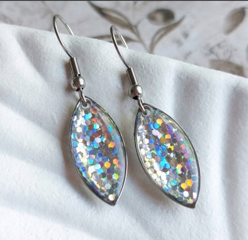 Kolczyki wiszące z brokatem, holograficzna biżuteria na imprezę