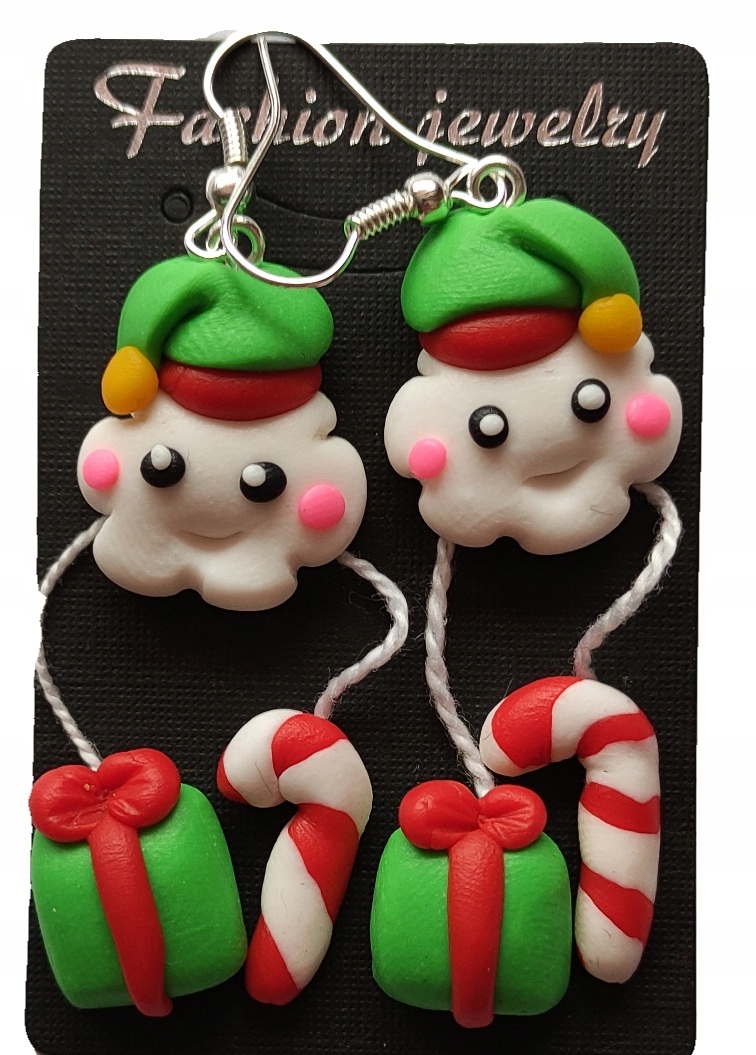 KOLCZYKI Z MODELINY CHMURKI Z PREZENTAMI NA ŚWIĘTA
