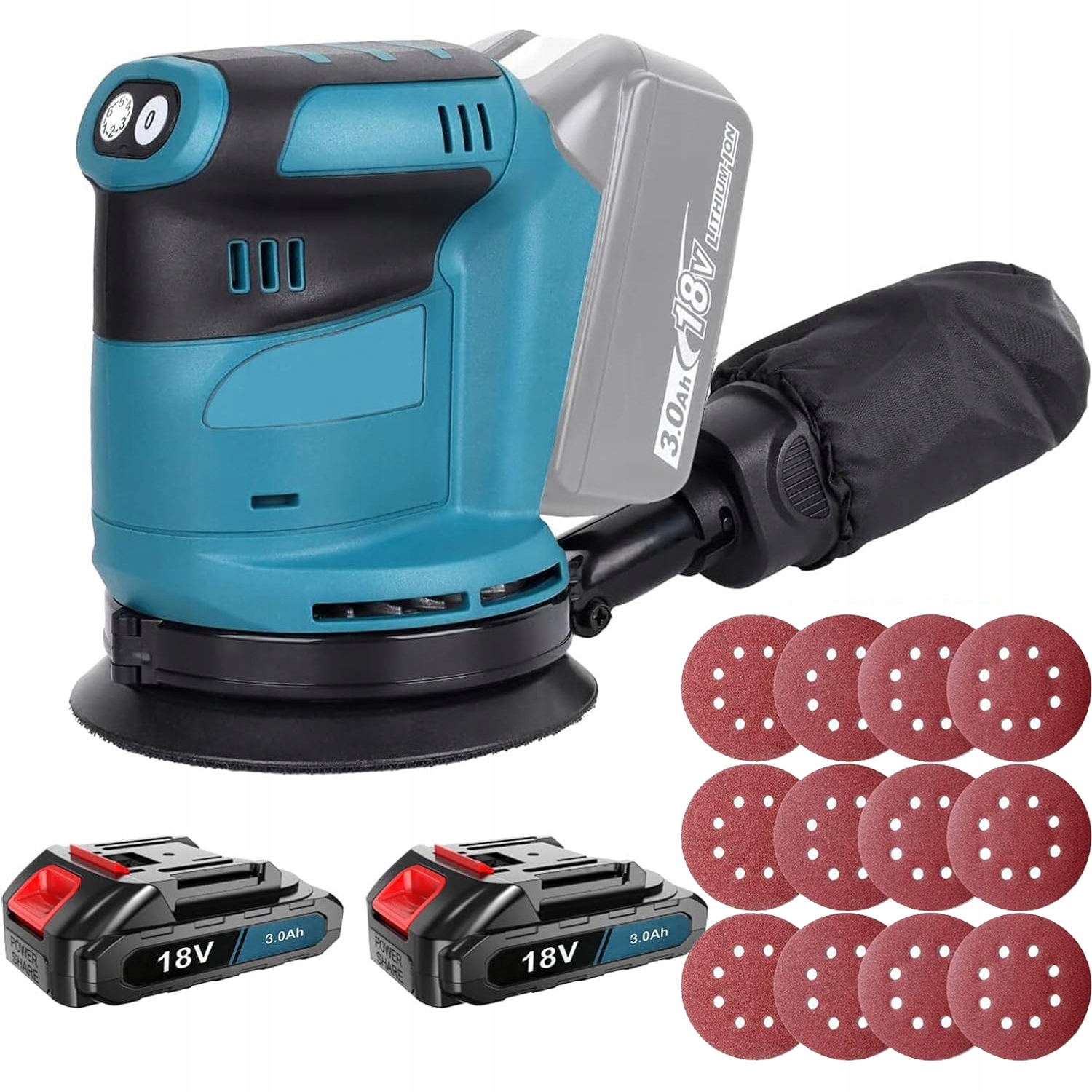 - Эксцентричная шлифовальная шлифовка, совместимая с Makita, оснащена литий-ионной батареей 18 против.