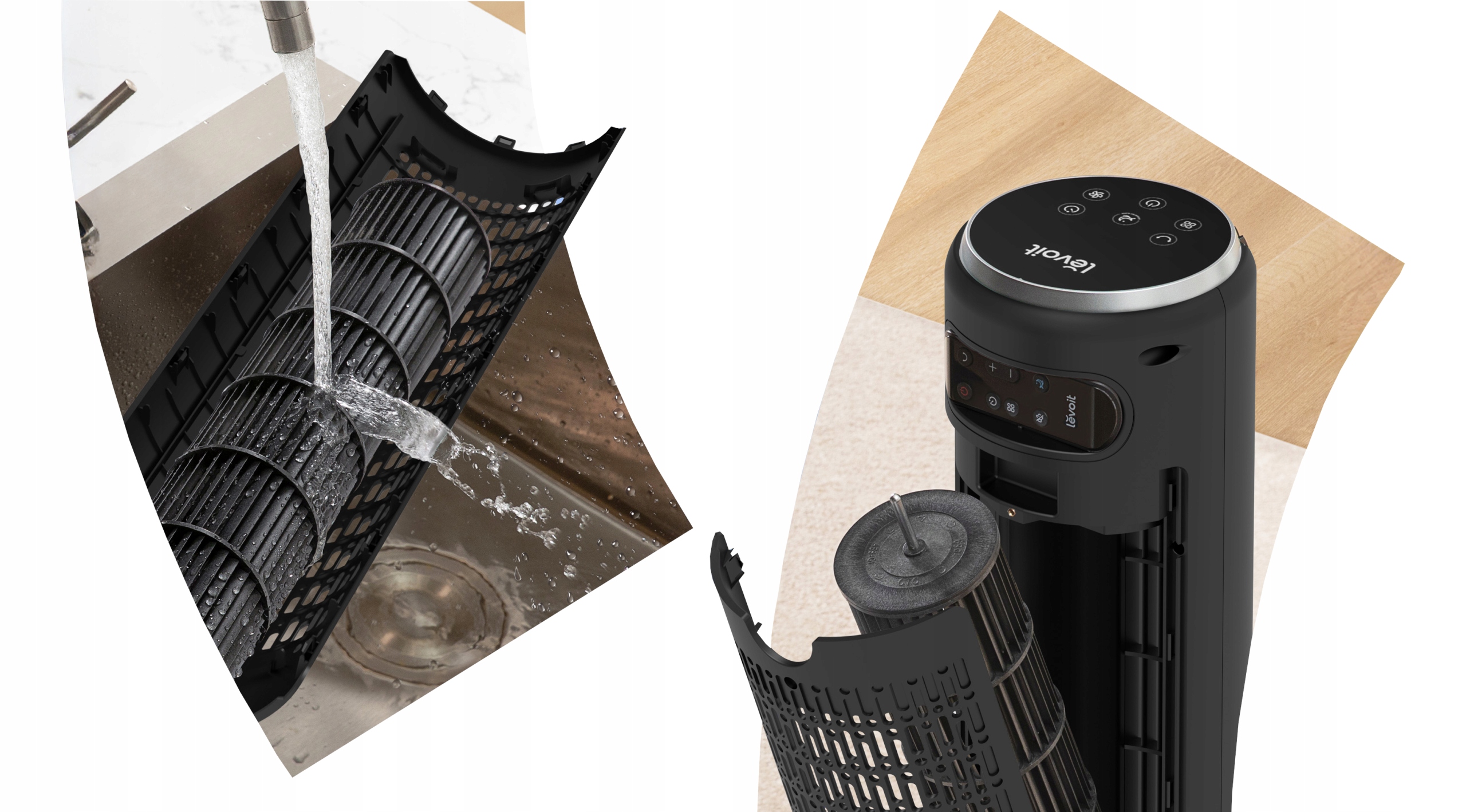 Вентилятор обеспечивает комфортную работу с помощью интуитивной сенсорной панели, расположенной на корпусе устройства. Кроме того, в комплект входит пульт дистанционного управления с отделением для хранения в задней части вентилятора.