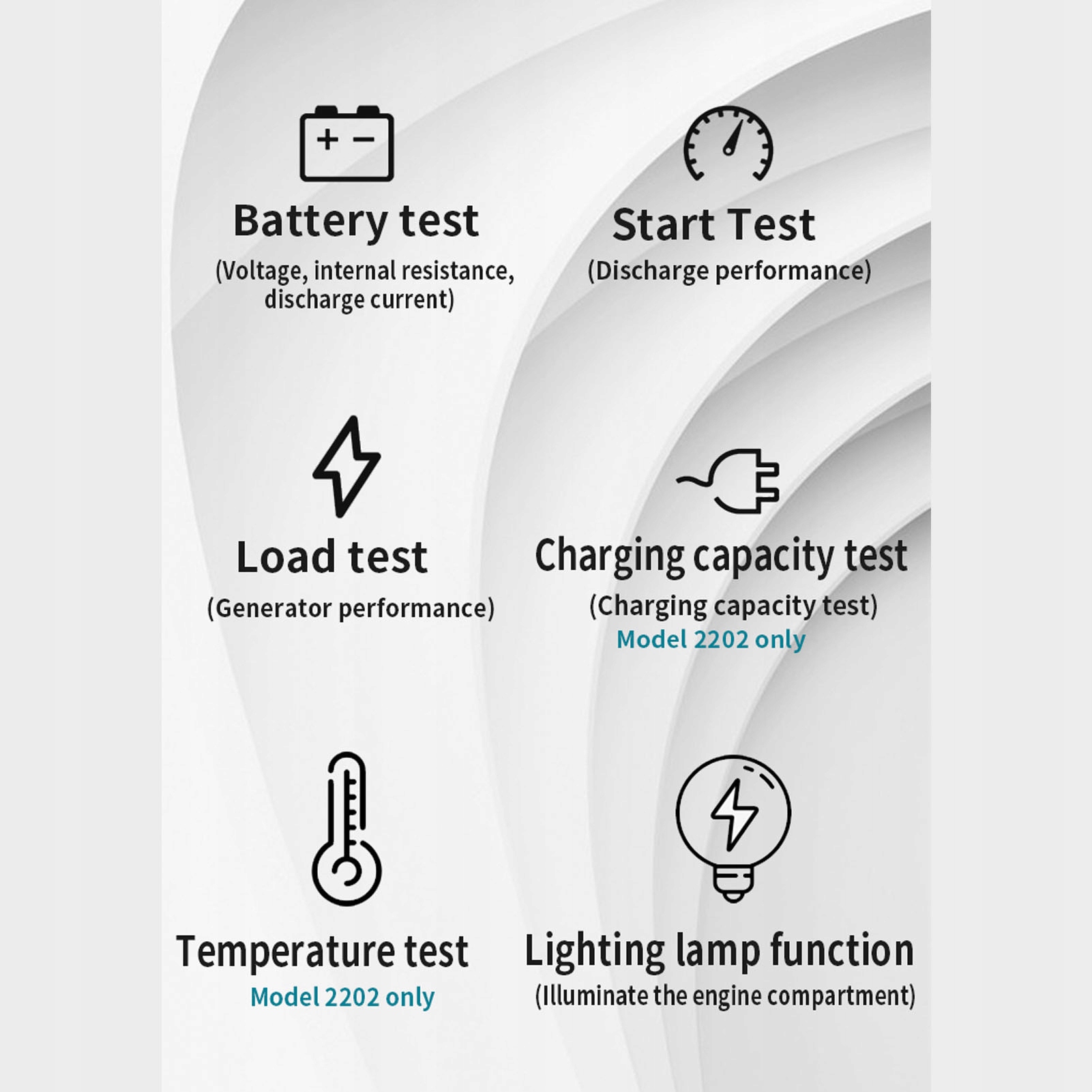 1, несколько приложений: он может проверить все батареи 12 В 24 В 100-1999CCA, обеспечить общий анализ аккумуляторов, тесты запуска и зарядки поддержки и тесты на генератор и стартовых тестов. 2. Параметры теста: тестер может предоставить основные параметры батареи, такие как напряжение, внутреннее сопротивление, усилитель холодного ботинка и емкость AH, состояние батареи и зарядку. 3, отличный чип: тестер батареи использует превосходный интеллектуальный чип, который может предоставить более 99,5% точных отчетов о тестировании за миллисекунд, эффективно и надежно. 4, В случае автомобильной батареи: Аналиазер нагрузки батареи может тестировать батареи внутри и снаружи транспортного средства и сброшенных батарей, используя тестовые зажимы для облегчения подключения и использования. 5, Clear Display: тестер нагрузки аккумулятора использует 4-цветный дисплей, прозрачный и интуитивно понятный, с белой подсветкой обеспечивает защиту от перенапряжения и обратного входа.