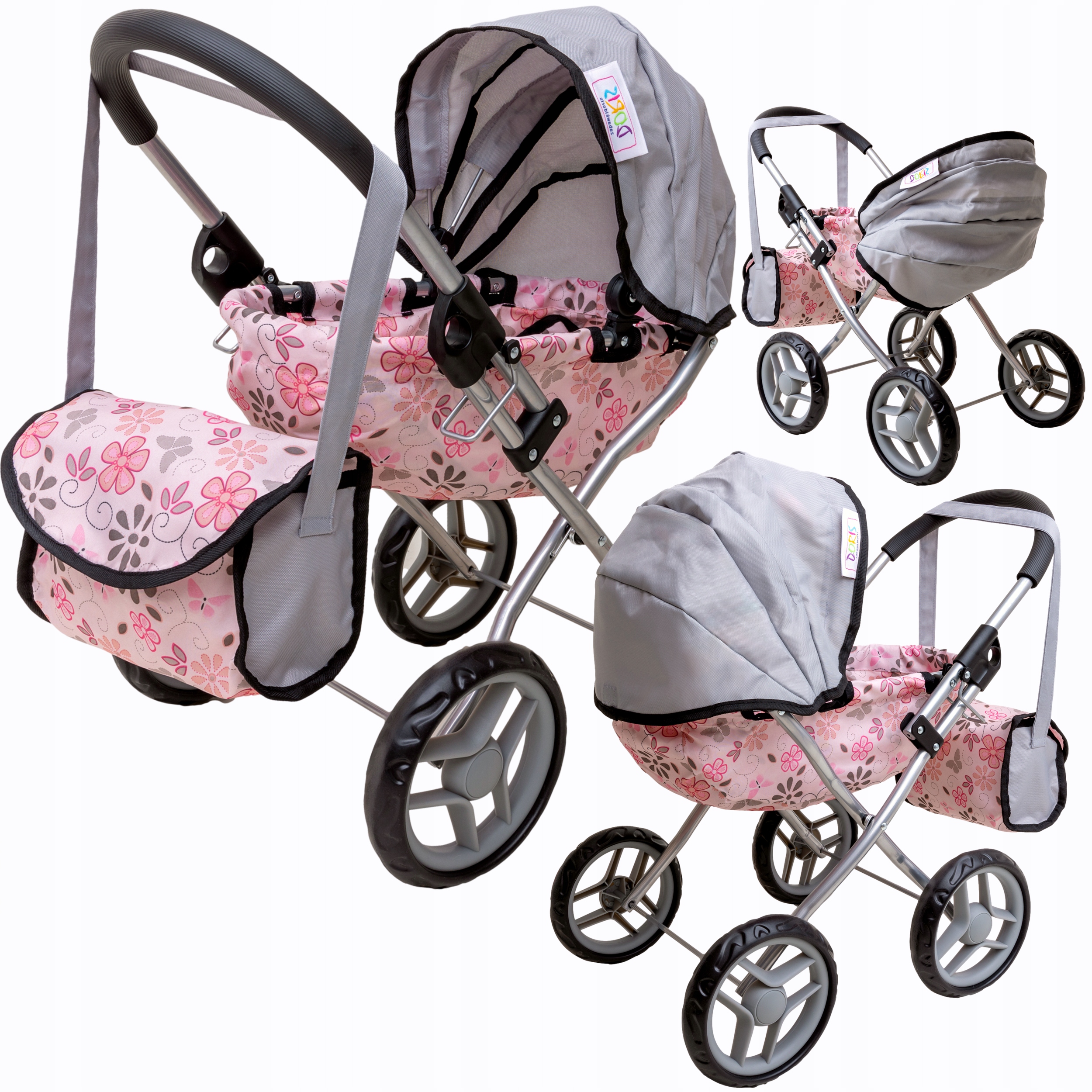 Wózek dla lalek GŁĘBOKI GONDOLA SKŁADANY REGULOWANA BUDA + TORBA dla lalki