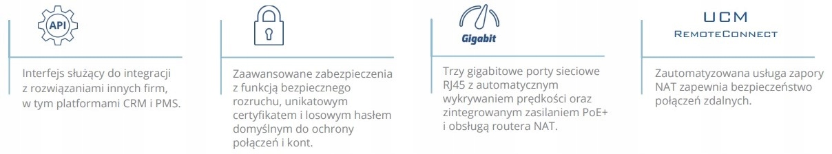 - Сетевые протоколы: SIP, TCP/UDP/IP, RTP/RTCP, IAX, ICMP, ARP, DNS, DDNS, DHCP, NTP, TFTP, SSH, HTTP/HTTPS, PPPoE, STUN, SRTP, TLS, LDAP, HDLC, HDLC-ETH, PPP, Frame Relay (в ожидании), IPv6, OpenVPN®