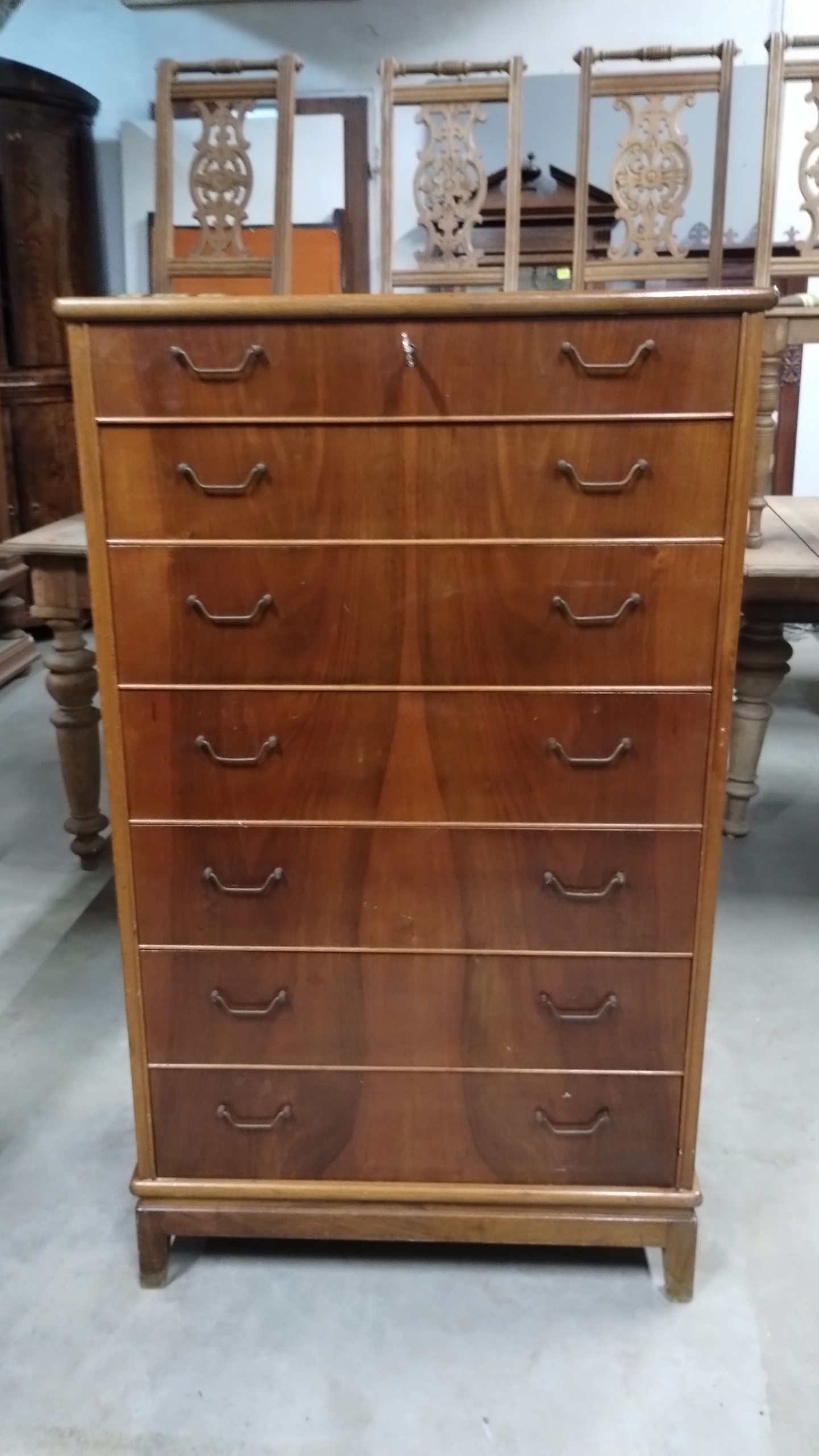 Комод з горіхового шифонію, датський дизайн 1950 р., арт-деко, сім ящиків