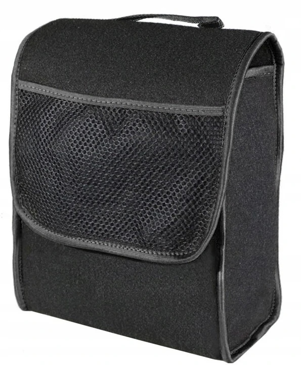 Сумка состоит из обитания материала - обивка неткана, и его края были закончены с отделкой. Он имеет липучку от дна и задней части сумки, препятствуя переключению ствола в машине. .. Его края были закончены с обрезкой. В верхней части сумки есть сильная ручка, за которой вы можете свободно перемещать туловище. Багажник закрыт с липучкой