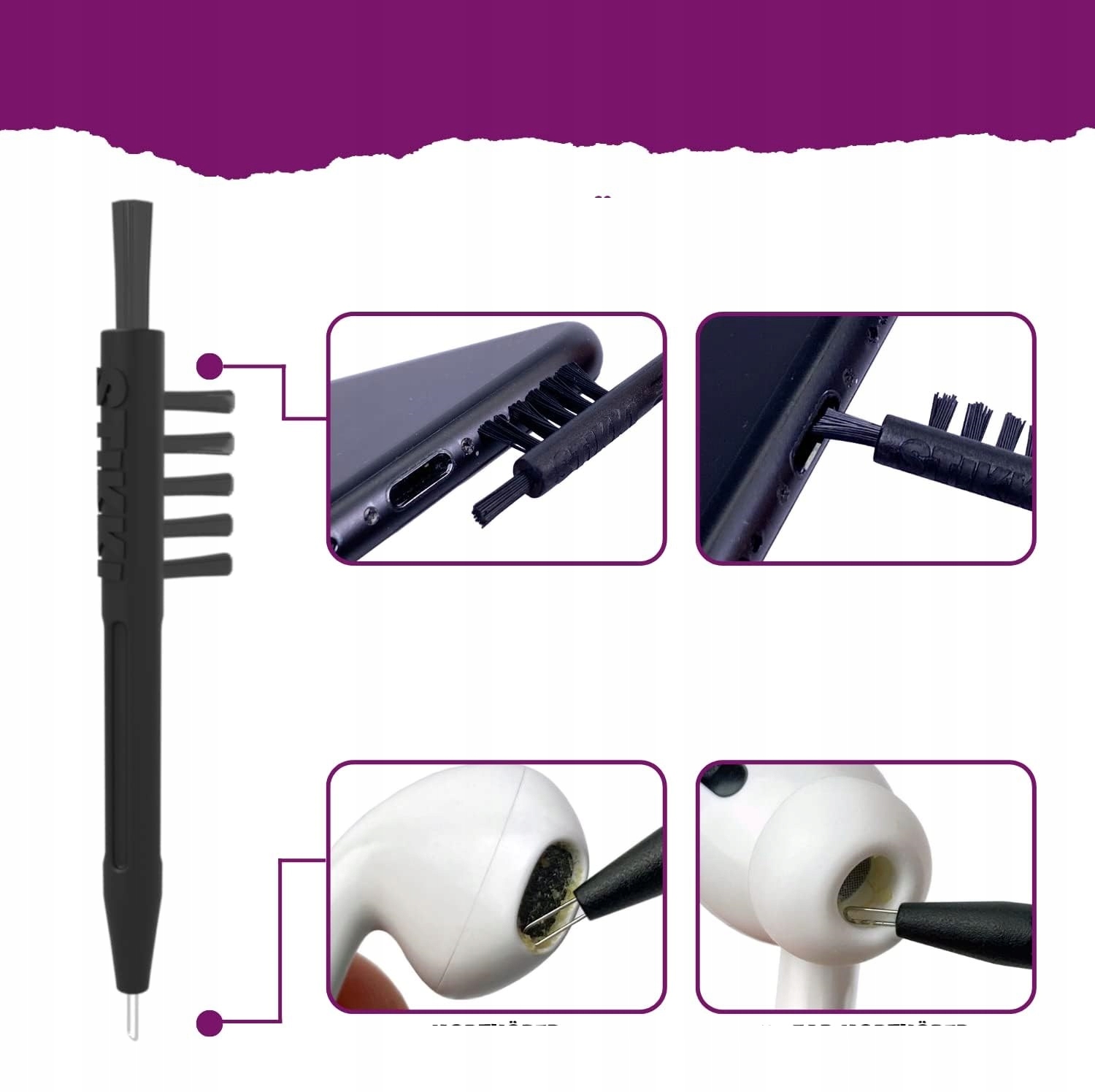Stikki идеально подходит для очистки труднодоступных мест, таких как микрофон и гриль-динамики, ювелирные украшения USB-C или деликатные аксессуары. Независимо от модели - iPhone, AirPods или других устройств - очистка быстро и эффективна.