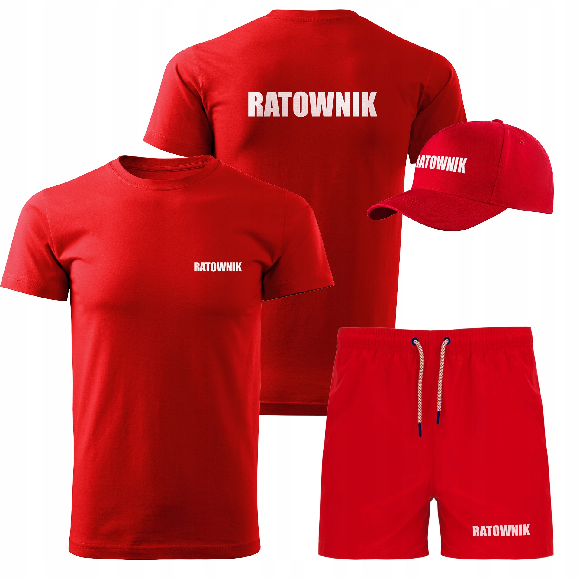 <р>? Полный наряд. Профессиональный внешний вид. Готов к действиюКомплект Спасатель — это тщательно подобранный комплект одежды, обеспечивающий целостный и узнаваемый образ спасателя — как на пляже, так и у бассейна. Он состоит из трех элементов характерного красного цвета: хлопковой футболки с принтами спереди и сзади, удобной бейсболки и быстросохнущих плавок. Все надписи RATOWNIK выполнены из прочной белой гибкой фольги, устойчивой к стирке, УФ-излучению и интенсивному использованию.