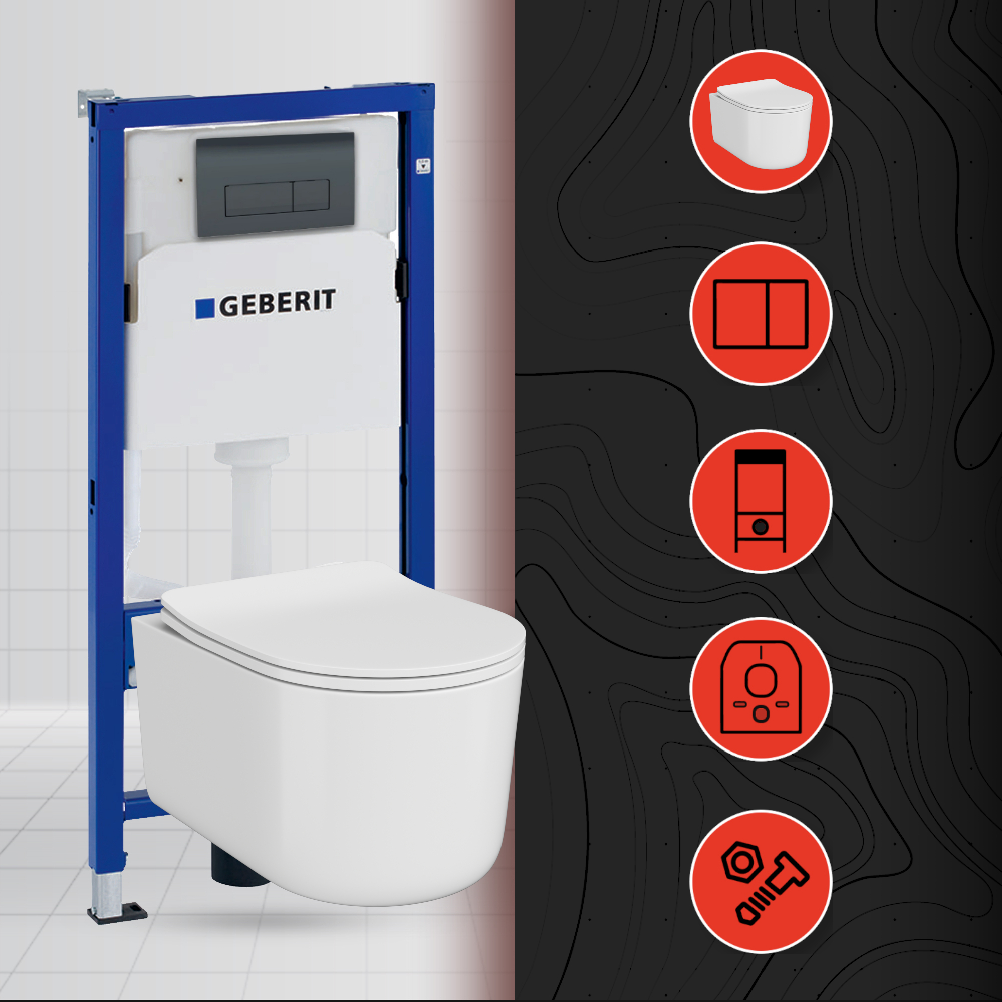Комплект GEBERIT DUOFIXBASIC + дельта-кнопка ЧЕРНАЯ + унитаз