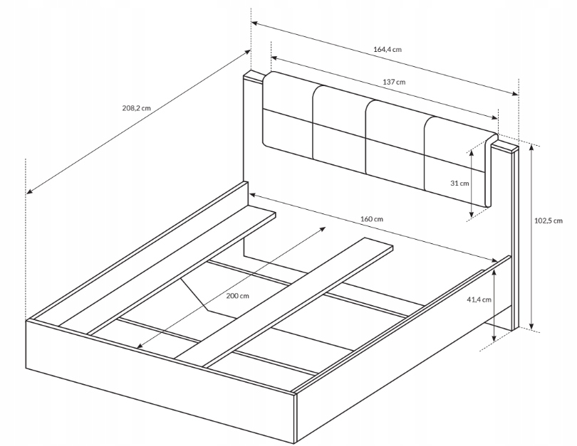Кровать должна быть оснащена матрасом размером 160х200.