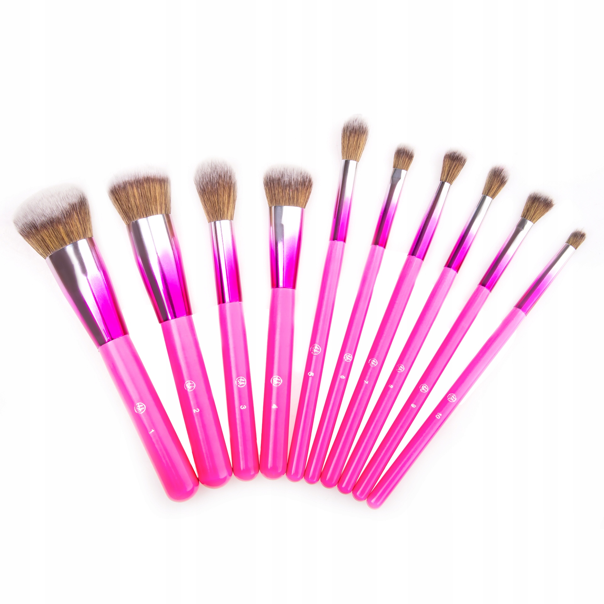 В наборе 10 кистей с качественной щетиной. В набор входят кисти для макияжа лица и глаз.