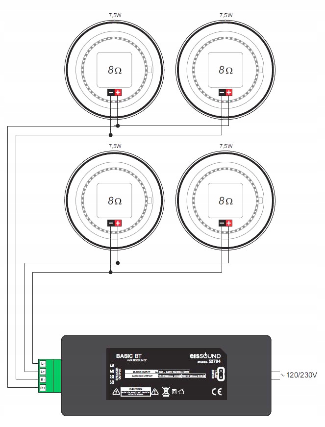 Kbsound Basic Series, в дополнение к тому факту, что они интуитивно понятны для использования, также легко установить неэназывание в существующей электрической установке - следовательно, это решение может использоваться как путем планирования ремонта, так и инвестиций, но также при завершении ремонта или строительства. Для динамиков, а затем подключите их, используя прикрепленный кабель динамика к усилителю Bluetooth. После поиска усилителя в выделенном месте, источник питания подключен. Последний этап - разместить динамики в ранее просверленные отверстия, расстояние между усилителем и внешним устройством, оснащенным Bluetooth, не должно превышать 10 м. Также рекомендуется, чтобы глубина, необходимая для коноса динамиков, составляла около 70 мм.