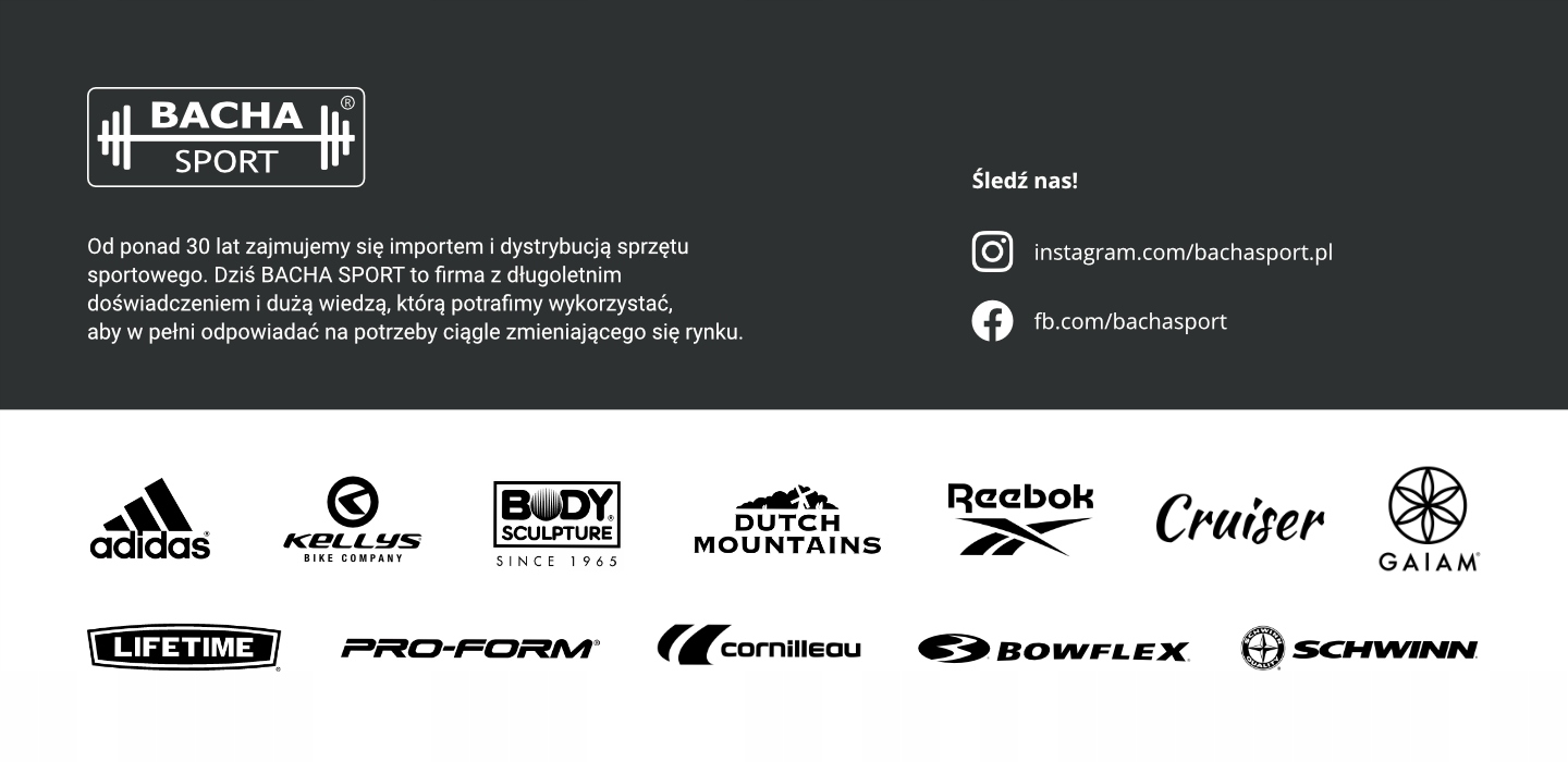 В Bacha Sport мы хотим предоставлять современное спортивное оборудование высочайшего качества по лучшей цене. Именно поэтому мы сотрудничаем только с известными производителями спортивных товаров.