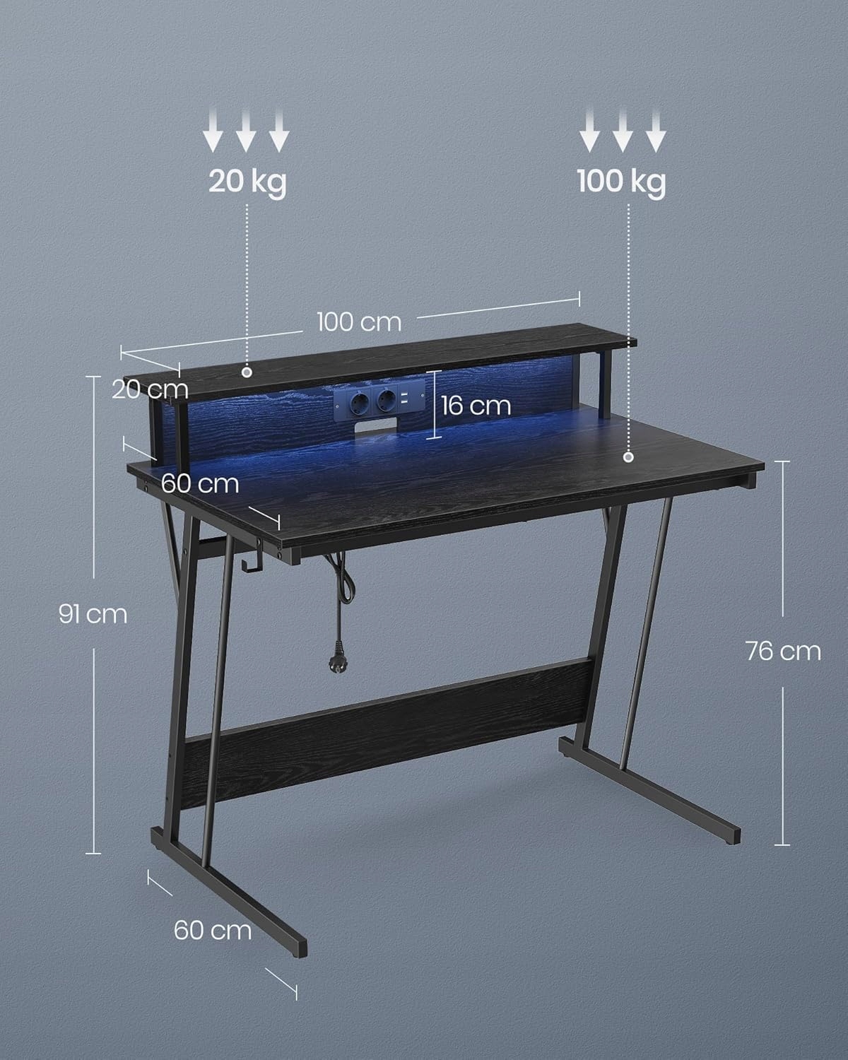 Компьютерный стол Black 100 см светодиодный RGB Bearlight USB -монитор