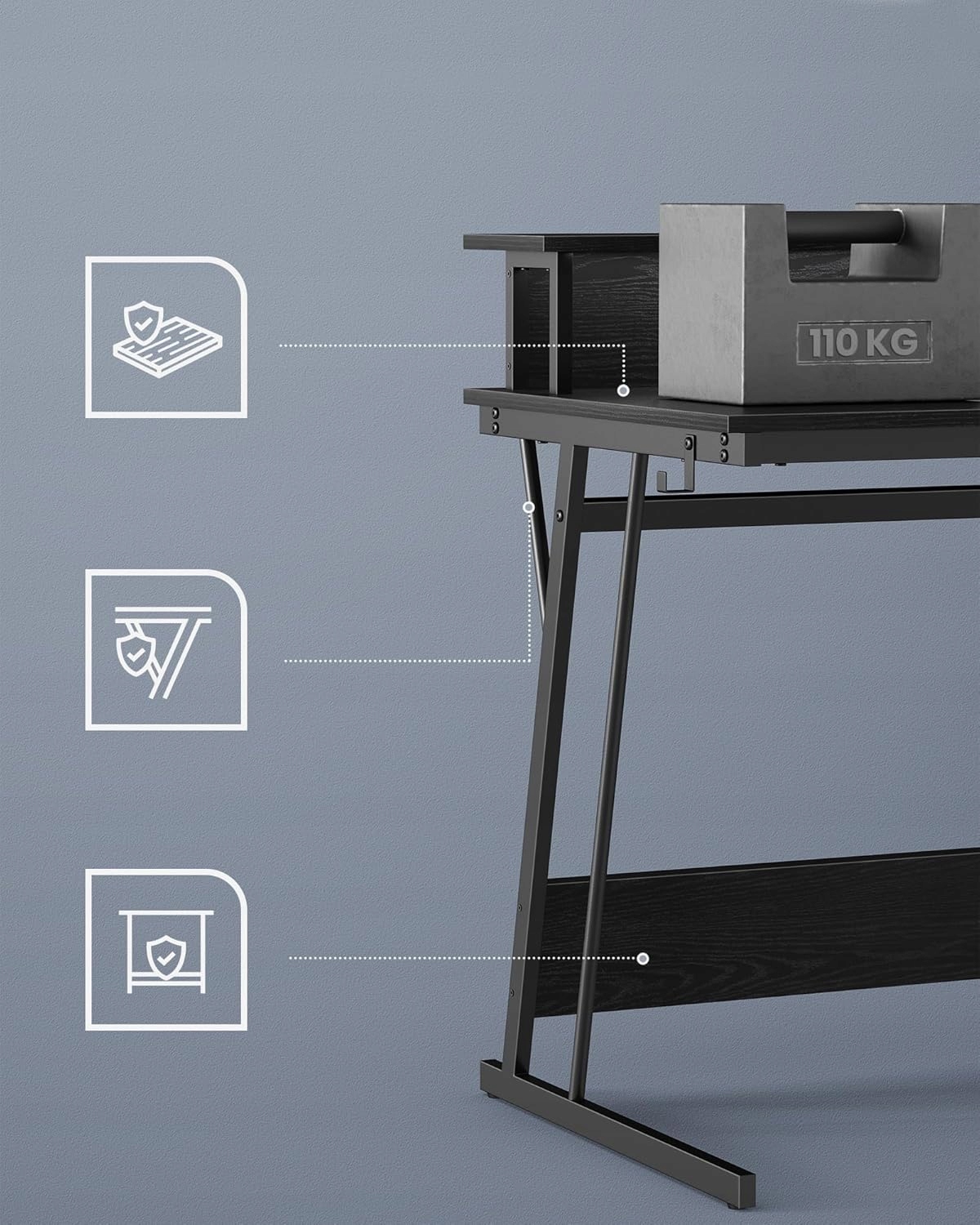 ⭐ Эргономичный монитор Стенд: Эта таблица имеет мониторный стенд , который держит 2 экрана на высоте глаз. Это помогает облегчить шею и назад во время долгих сессий. Внизу также находится полка, предоставляя дополнительное пространство для хранения и помогая сохранить заказ на столе.