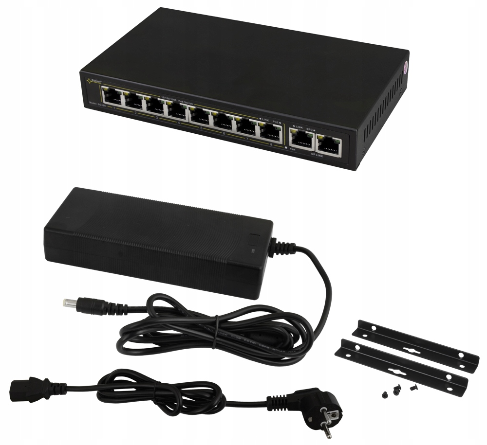 Коммутатор PoE Pulsar SG108 — 10 портов, 8 гигабитных портов PoE 802.3af, 2 гигабитных порта Uplink