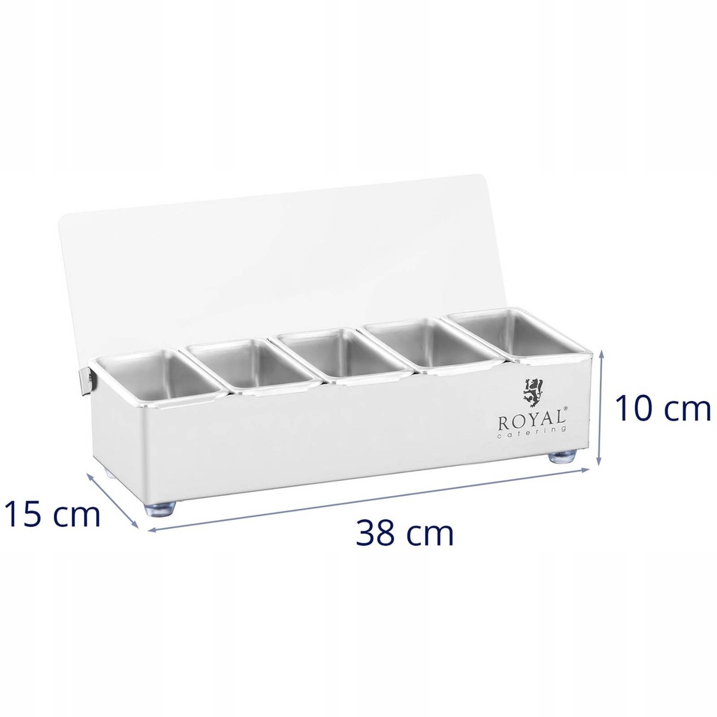 Контейнер Bartamens для добавления напитков -добавок от королевского ассортимента общественного питания является идеальной организационной помощью во время еды. Различные ингредиенты, такие как сырые овощи или фрукты, могут храниться отдельно и свежим в течение длительного времени. Аксессуар является современным решением для профессиональных кухонь в ресторанах, бистро, барах, сети быстрого питания, фестивальных стендов или на мероприятиях по общественным питаниям.