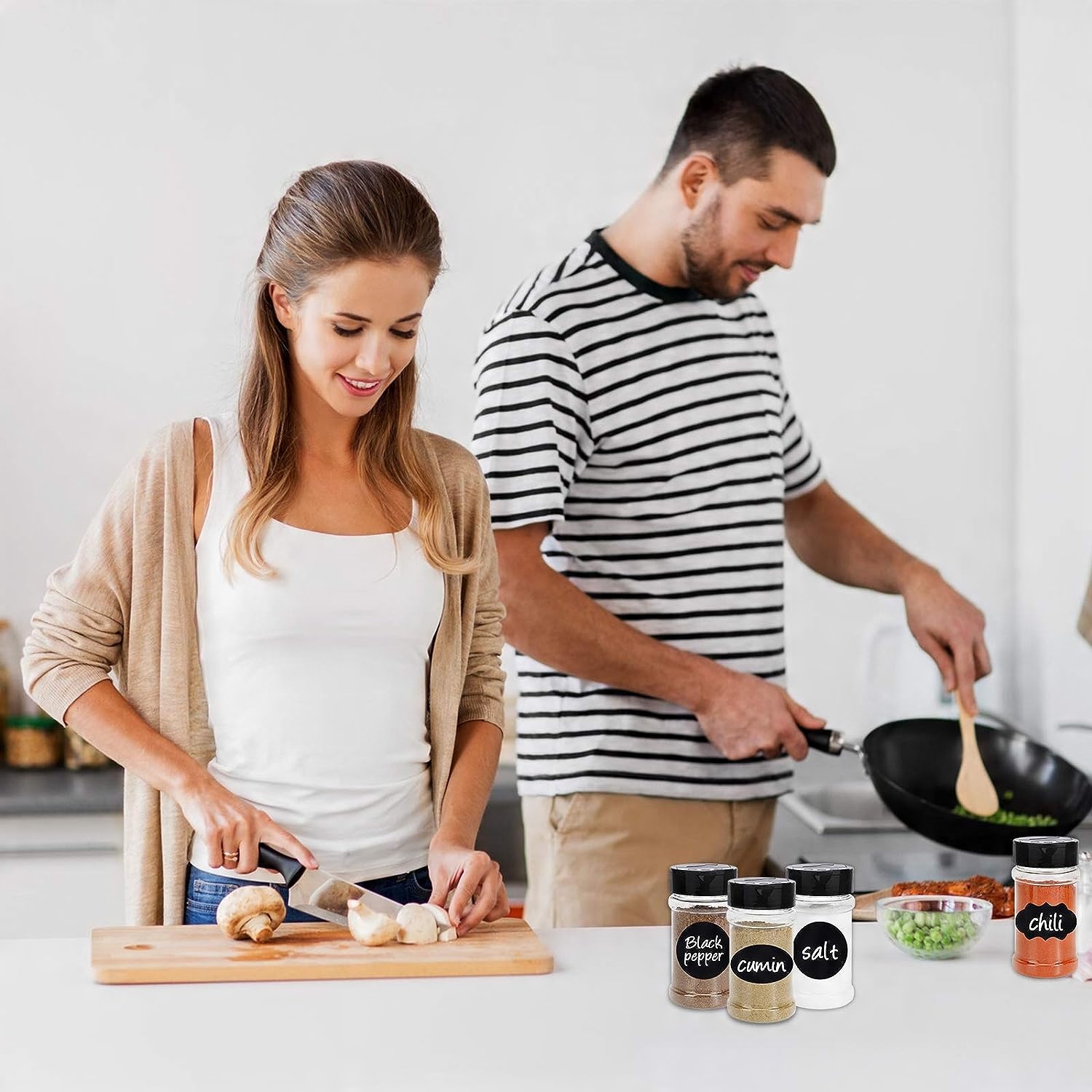 12 штук, идеально подходящих для любых специй. В комплект также входят крышки-шейкеры, складная воронка и этикетки. Вы можете маркировать их, чтобы легко отличать отдельные специи. Благодаря этому ваши специи всегда будут аккуратно разложены!