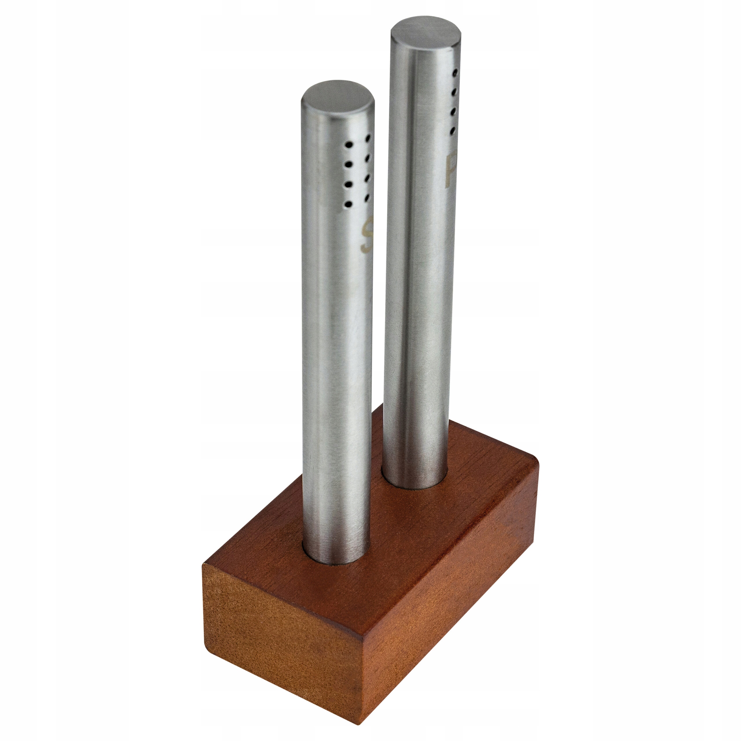 b> на подставке из красивой древесины акации. Оба контейнера изготовлены из нержавеющей стали, что делает ихпрочными и простыми в уходе. Все элементы набора тщательно изготовлены и идеально подогнаны друг к другу, что делает их идеальными прекрасное дополнение к любому столу.