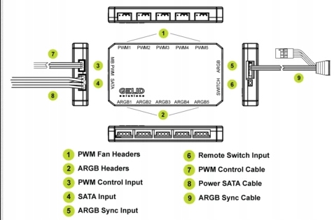 - Входы 1 x Power SATA, 1 Управление ШИМ, 1 3-контактный разъем ARGB Sync.